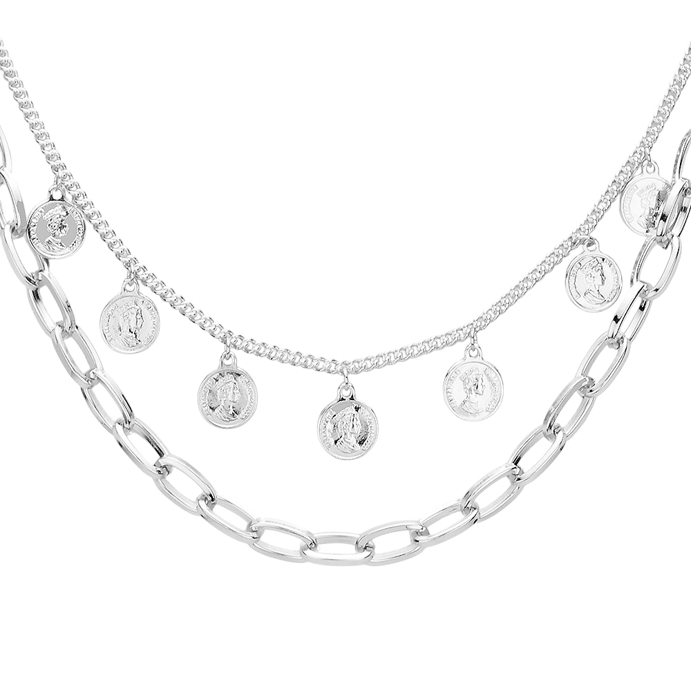 Metal Chain Quarter Coin Layered Necklace