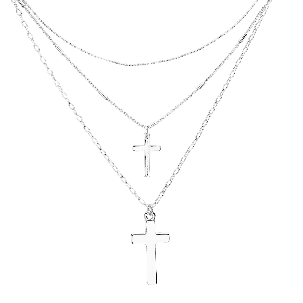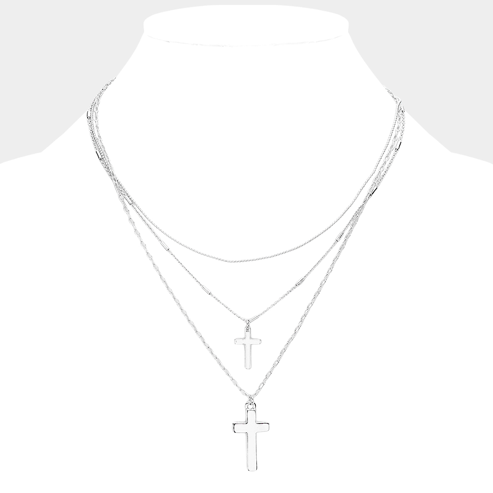 Metal Cross Pendant Layered Necklace