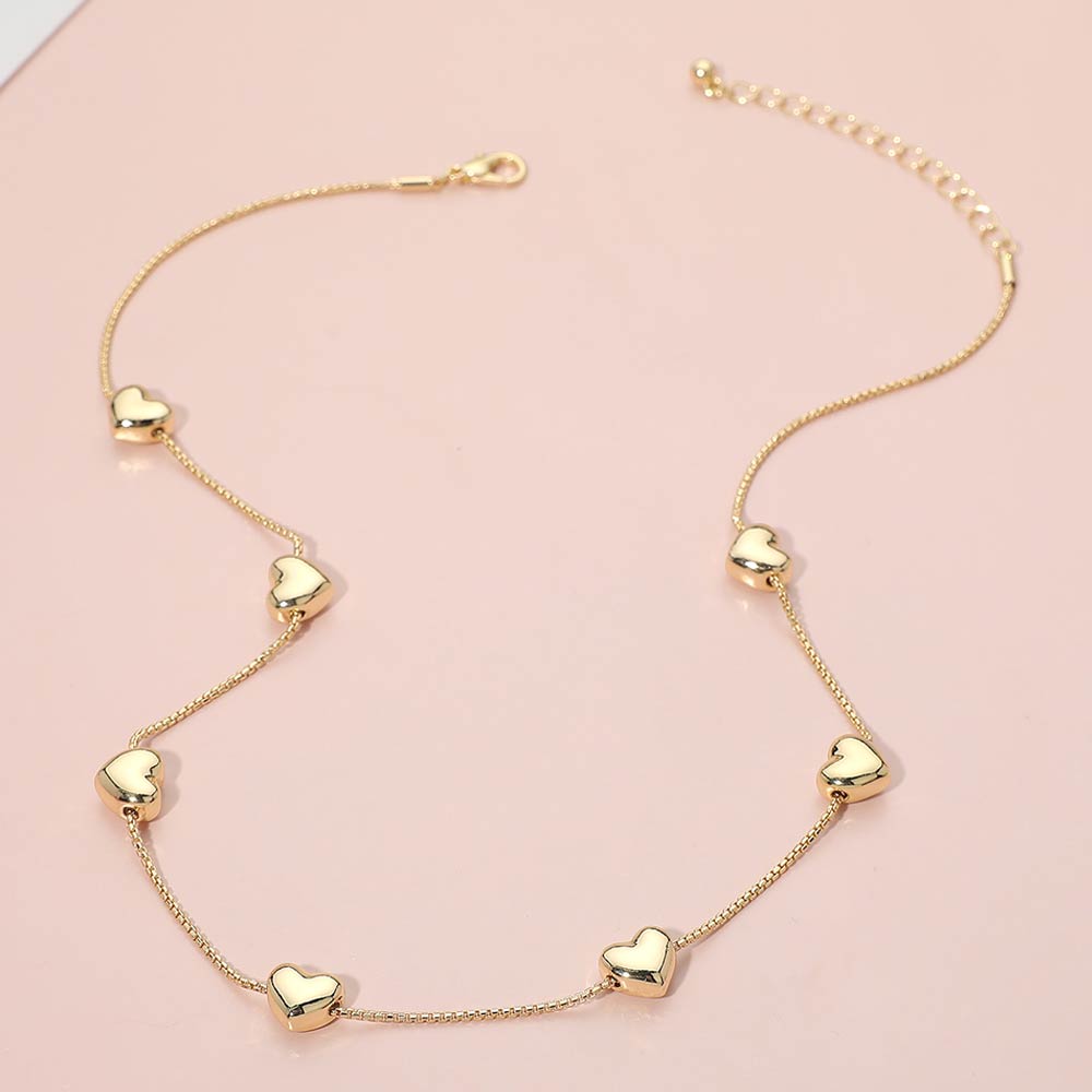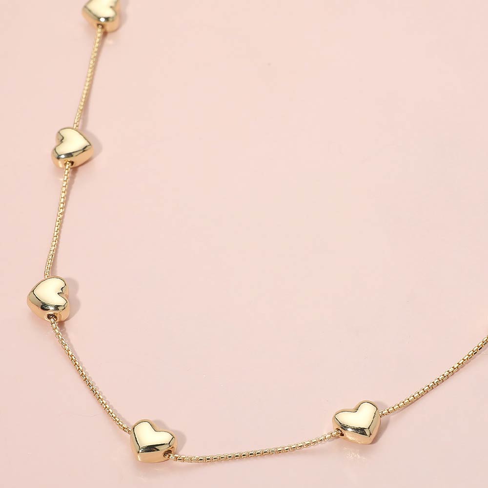 Metal Heart Charm Station Necklace