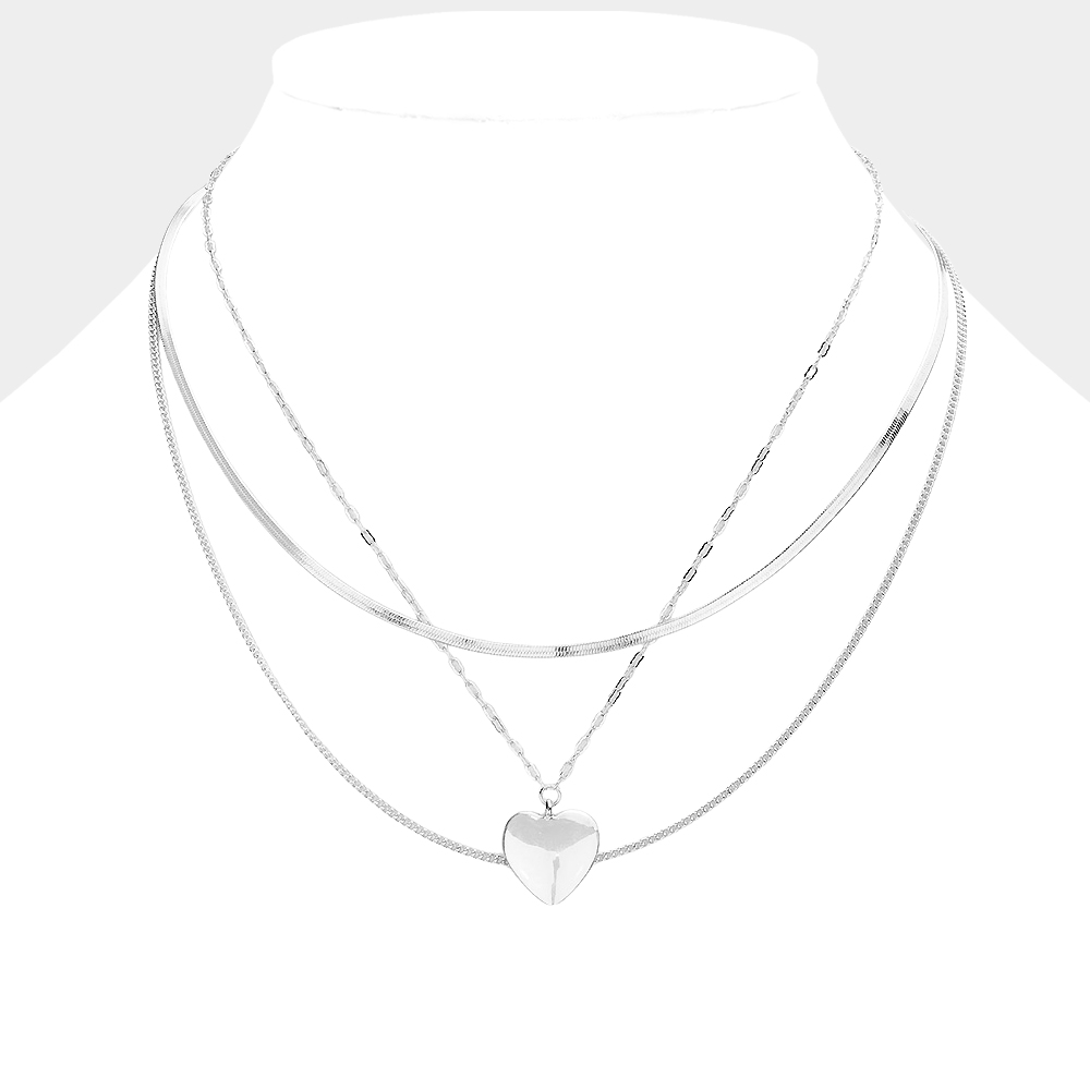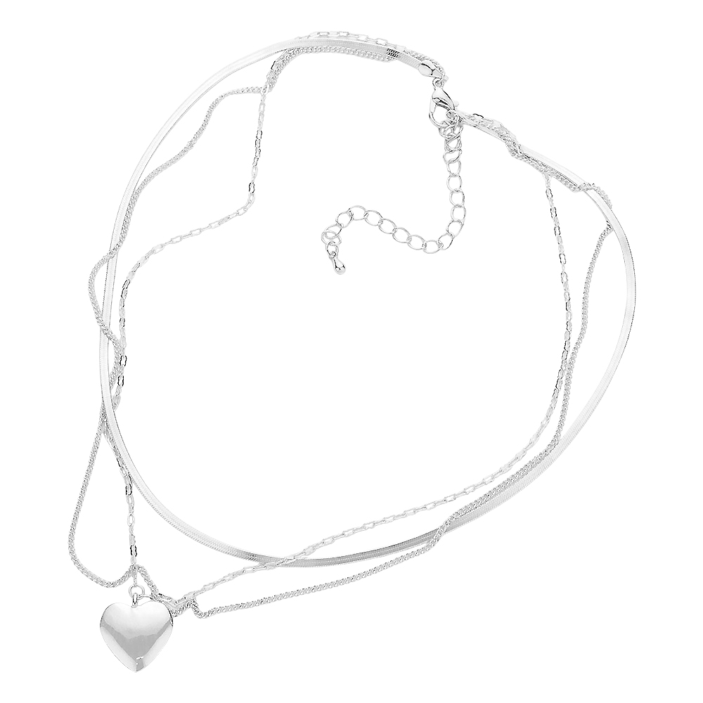 Round Stone Pointed Antique Metal Heart Pendant Necklace