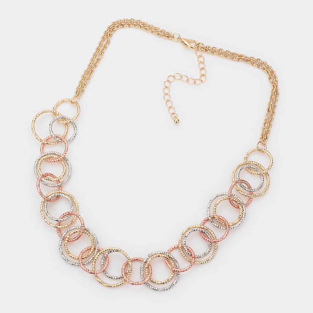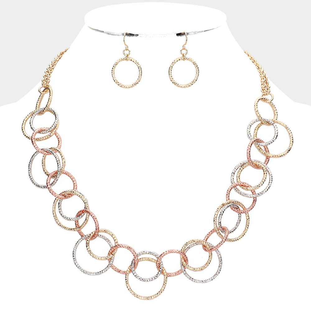 3-PCS Crystal rhinestone pave metal mesh necklace jewelry set