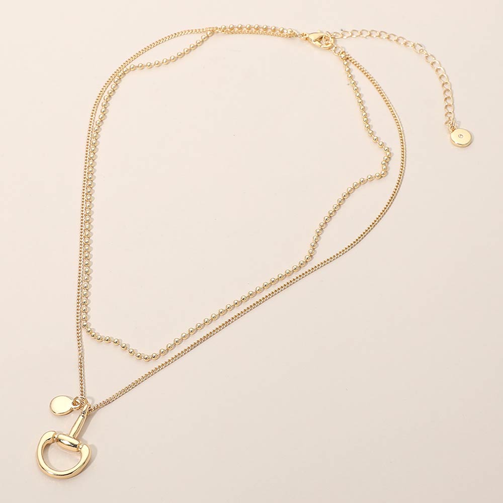 Polished Horsebit Disc Charm Beaded Chain Layered Necklace Polished Horsebit Disc Charm Beaded Chain Layered Necklace Polished Horsebit Disc Charm Beaded Chain Layered Necklace