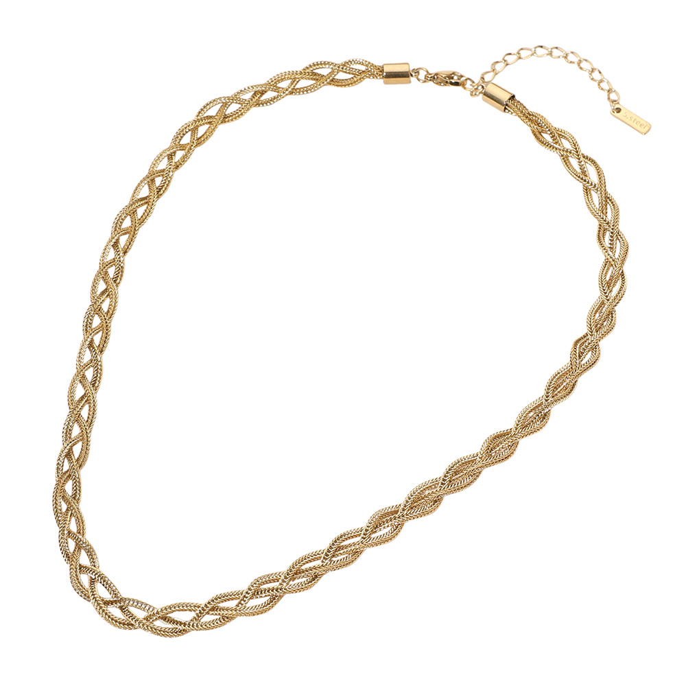 • Elegant braided chain necklace designed with an intricate woven silhouette for a refined yet modern look. A versatile accessory that layers beautifully or stands alone, perfect for everyday wear, office styling, casual outfits, or special occasions. Ideal for boutiques seeking timeless, easy-to-style jewelry pieces.