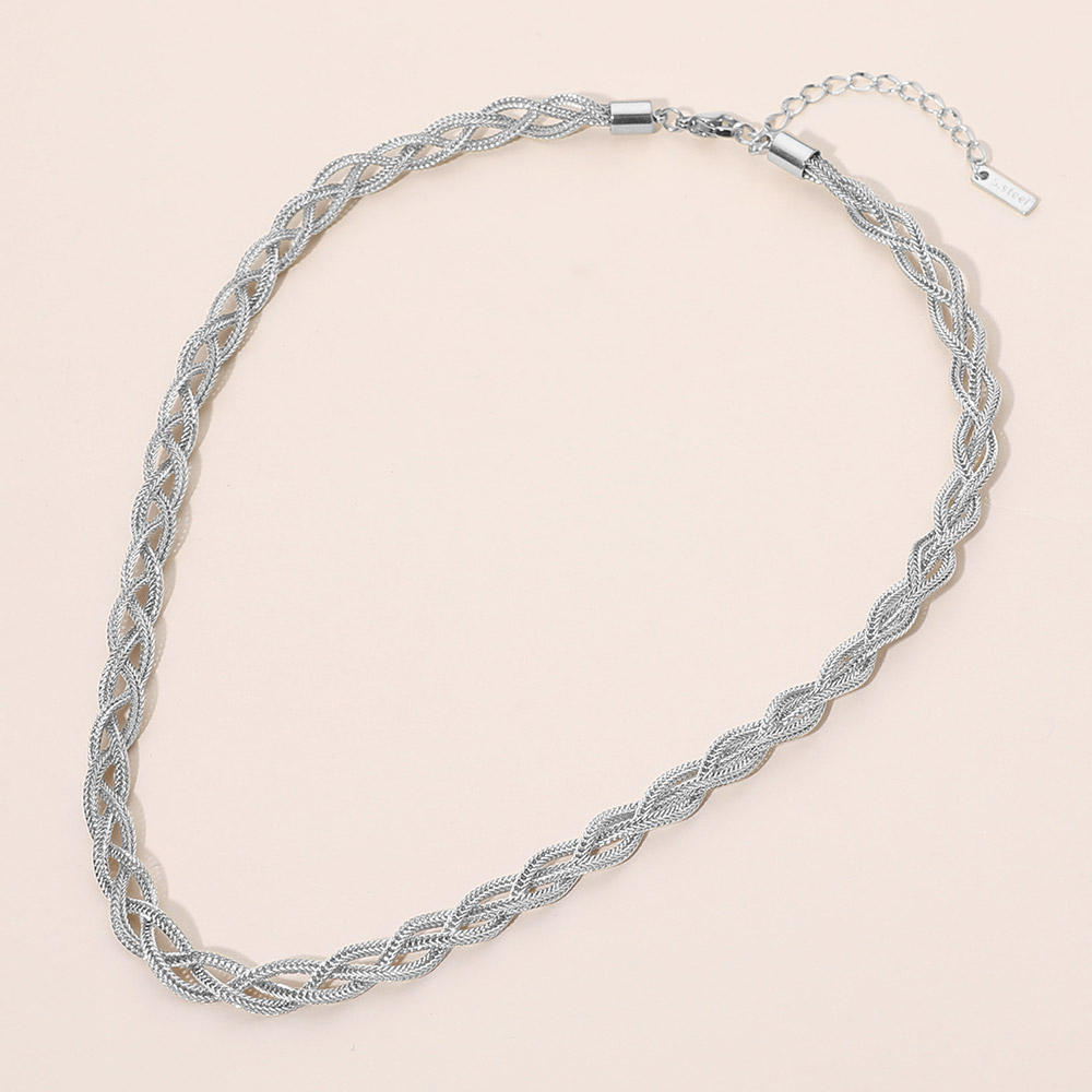 • Elegant braided chain necklace designed with an intricate woven silhouette for a refined yet modern look. A versatile accessory that layers beautifully or stands alone, perfect for everyday wear, office styling, casual outfits, or special occasions. Ideal for boutiques seeking timeless, easy-to-style jewelry pieces.