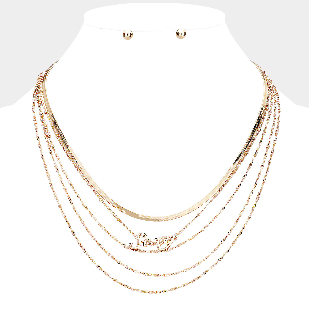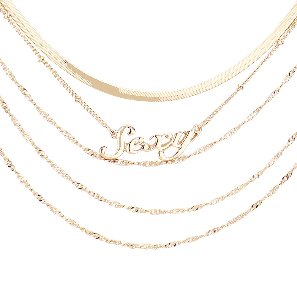 Sexy Pendant Multi Layered Metal Chain Bib Message Necklace