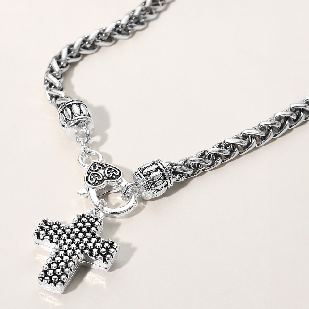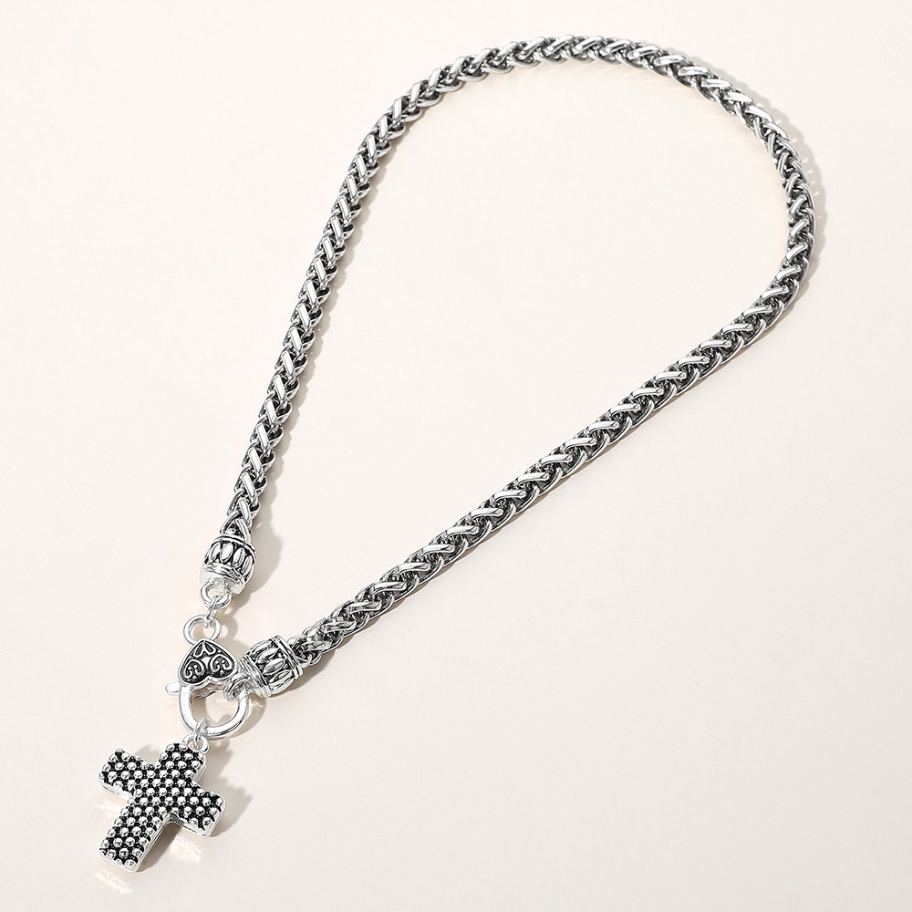 Textured Cross Pendant Pointed Antique Metal Necklace