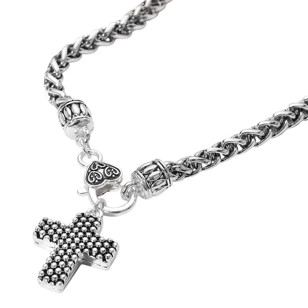 Chunky Religious Cross Heart Charm Station Fabric Chain Bracelet