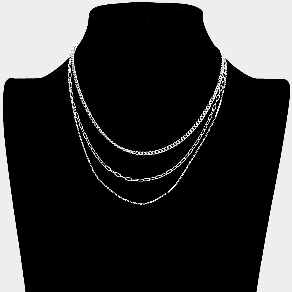 SECRET BOX_Stainless Steel Herringbone Beaded Chain Layered Necklace