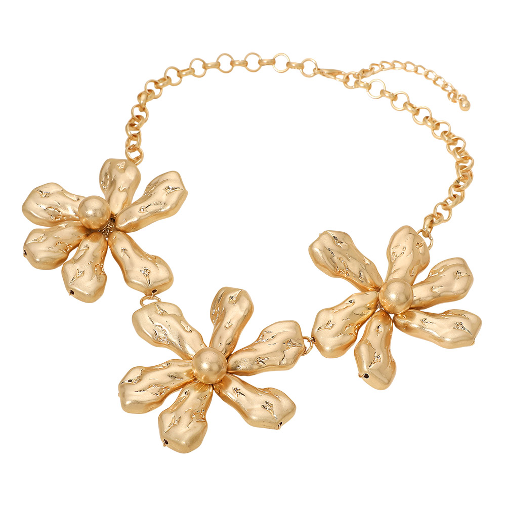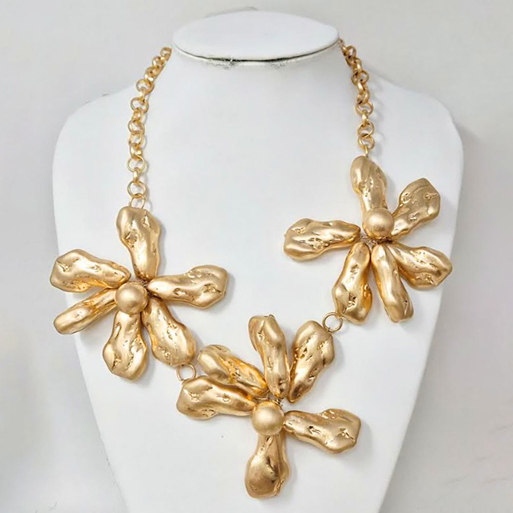 Triple Puffy Metal Flower Link Statement Necklace Triple Puffy Metal Flower Link Statement Necklace Triple Puffy Metal Flower Link Statement Necklace
