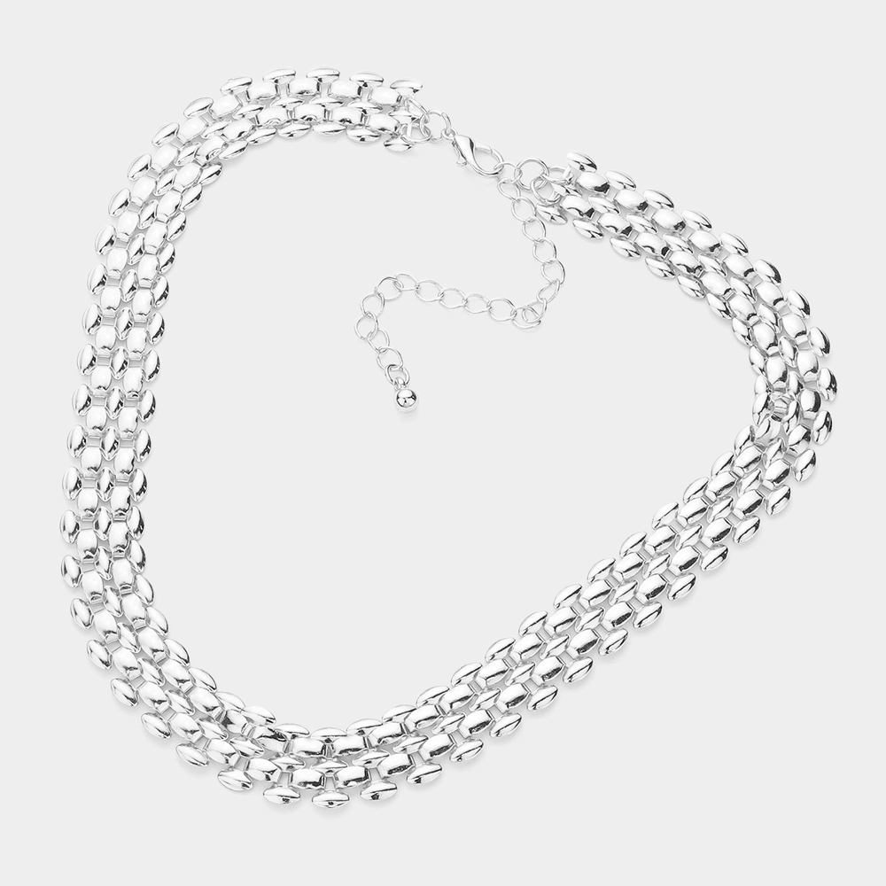 White Gold Dipped Metal Chain Collar Necklace