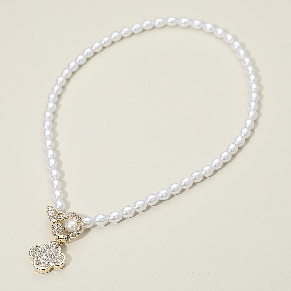 Details • Necklace Size : 19" • Pendant Size : 1.7" • Toggle Closure • A chic necklace featuring smooth beaded detailing and a sparkling quatrefoil charm that elevates any outfit. Designed with a stylish front clasp accent, it blends modern elegance with timeless appeal, making it perfect for casual looks or dressed-up occasions. • Gold Dipped • CZ Cubic Zirconia