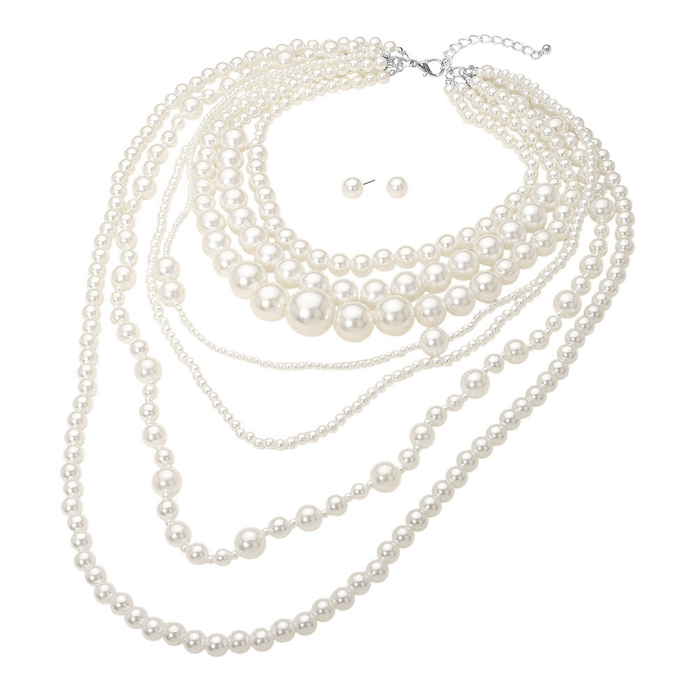 Chunky Pearl Beaded Multi Layered Statement Necklace