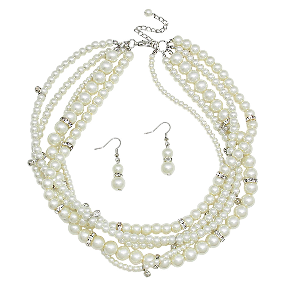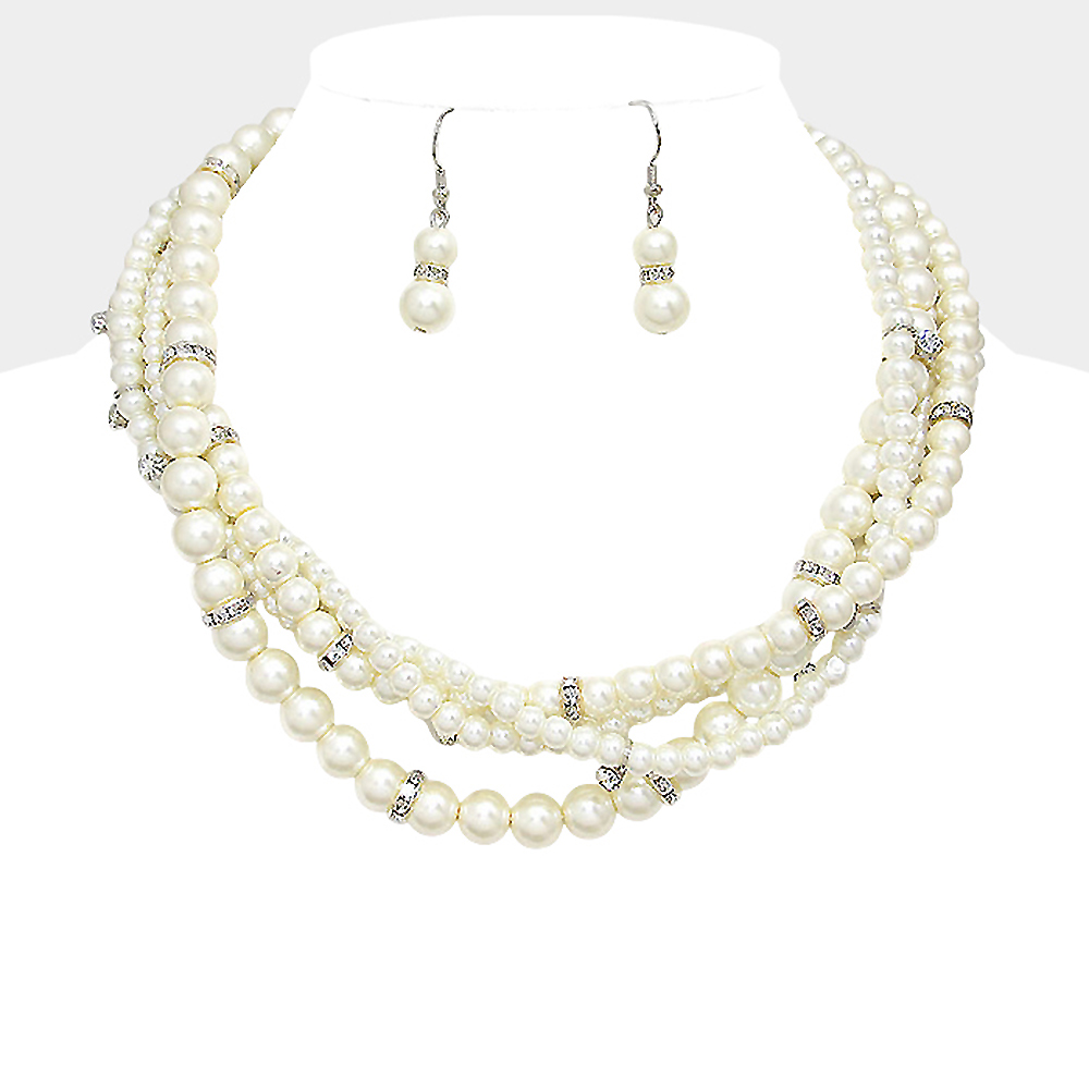 Crystal Accented Multi-Strand Pearl Necklace