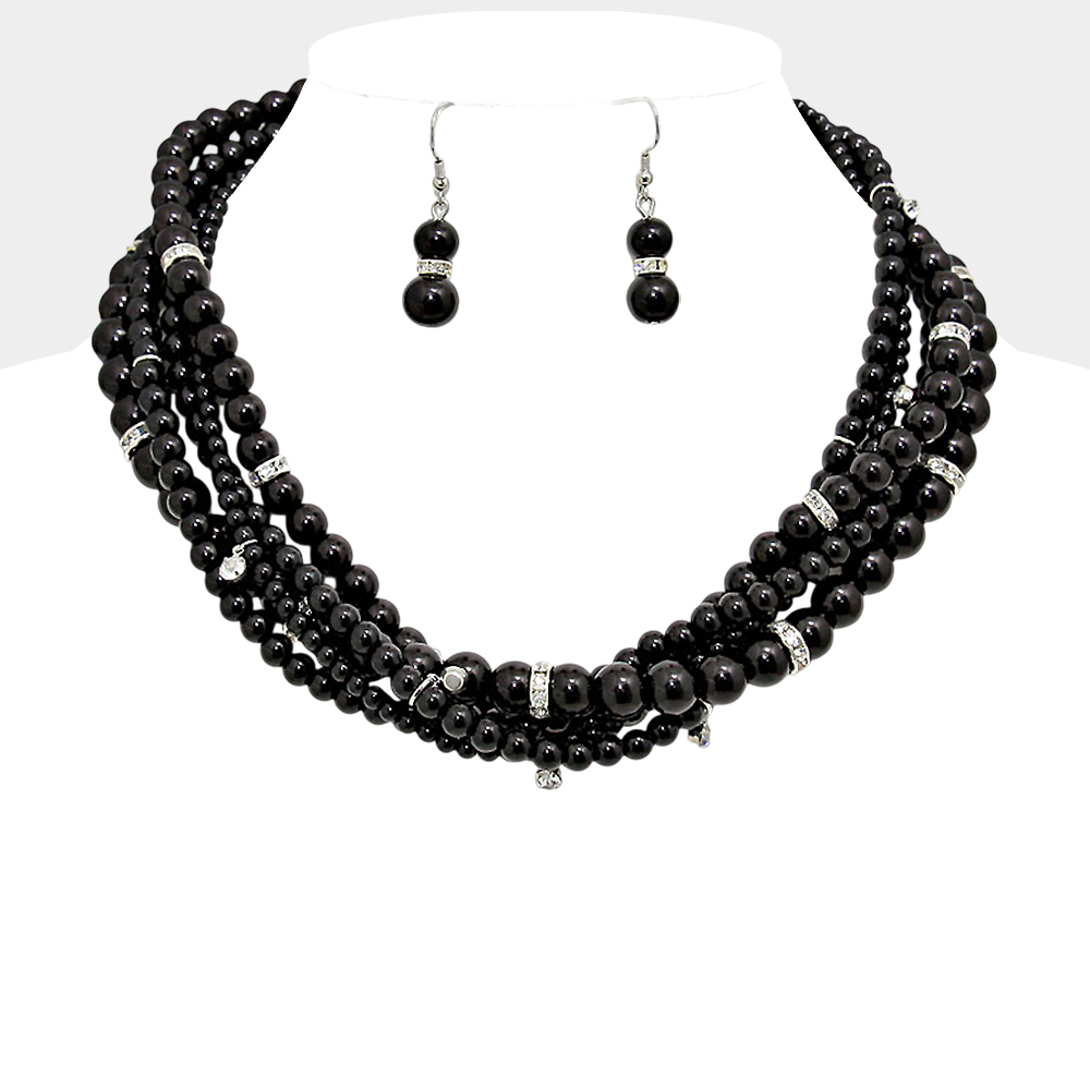 Crystal Accented Multi-Strand Pearl Necklace