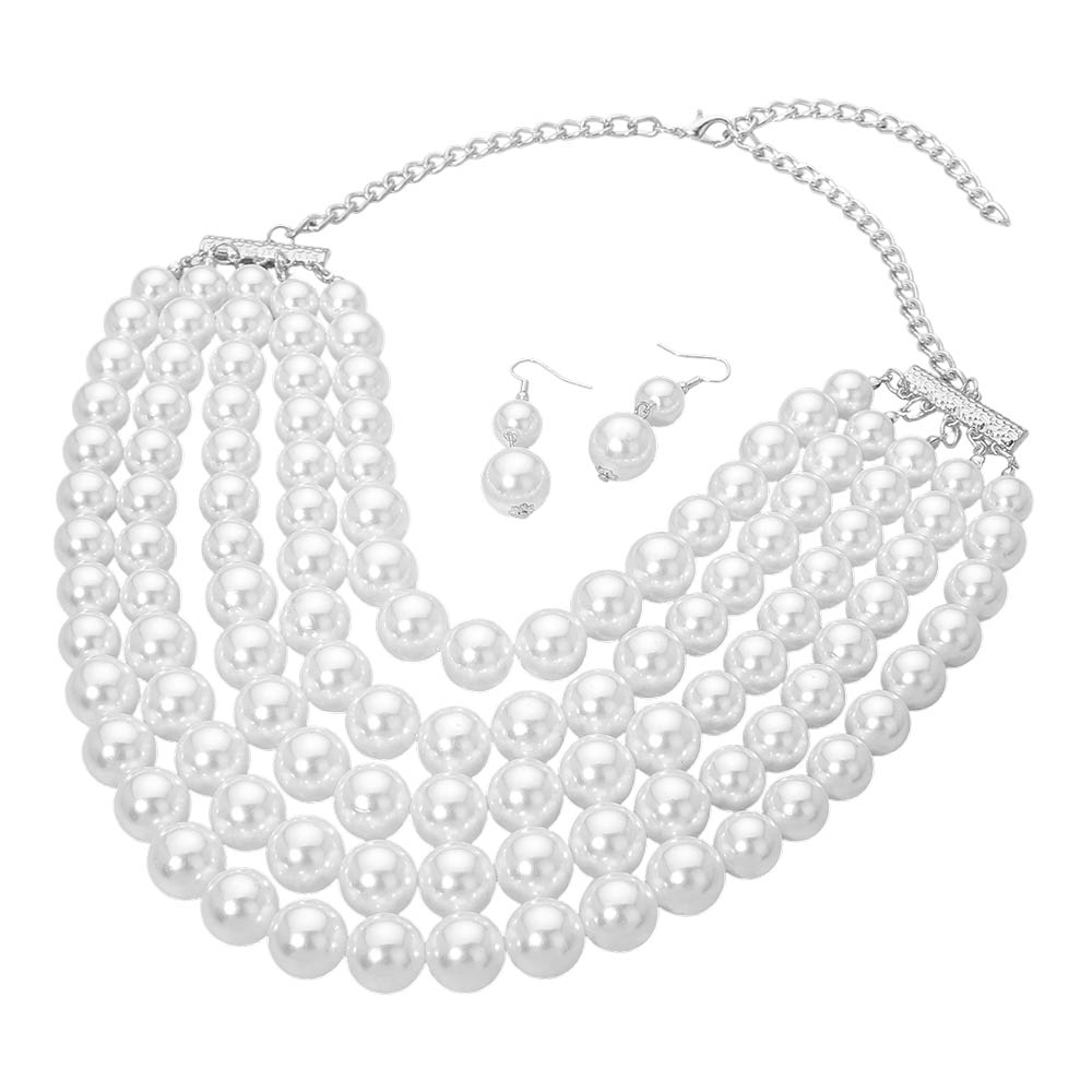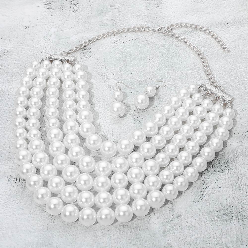 Pearl Beaded Multi Strand Statement Necklace