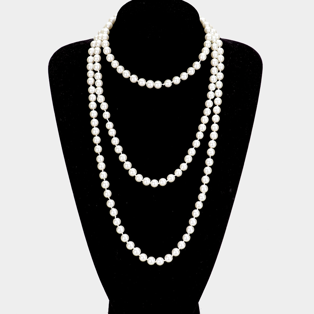 Rhinestone Paved Rose Pendant Pearl Necklace