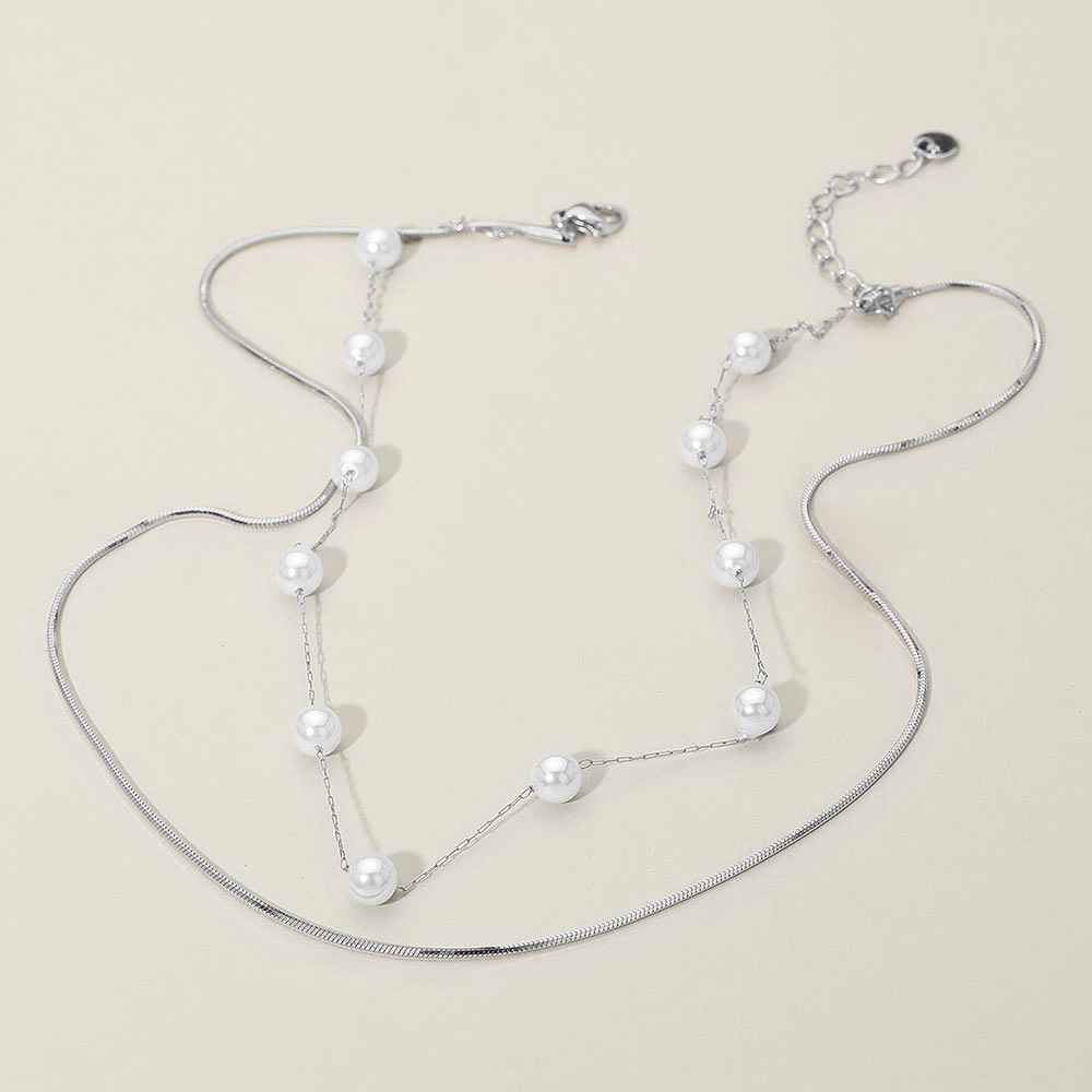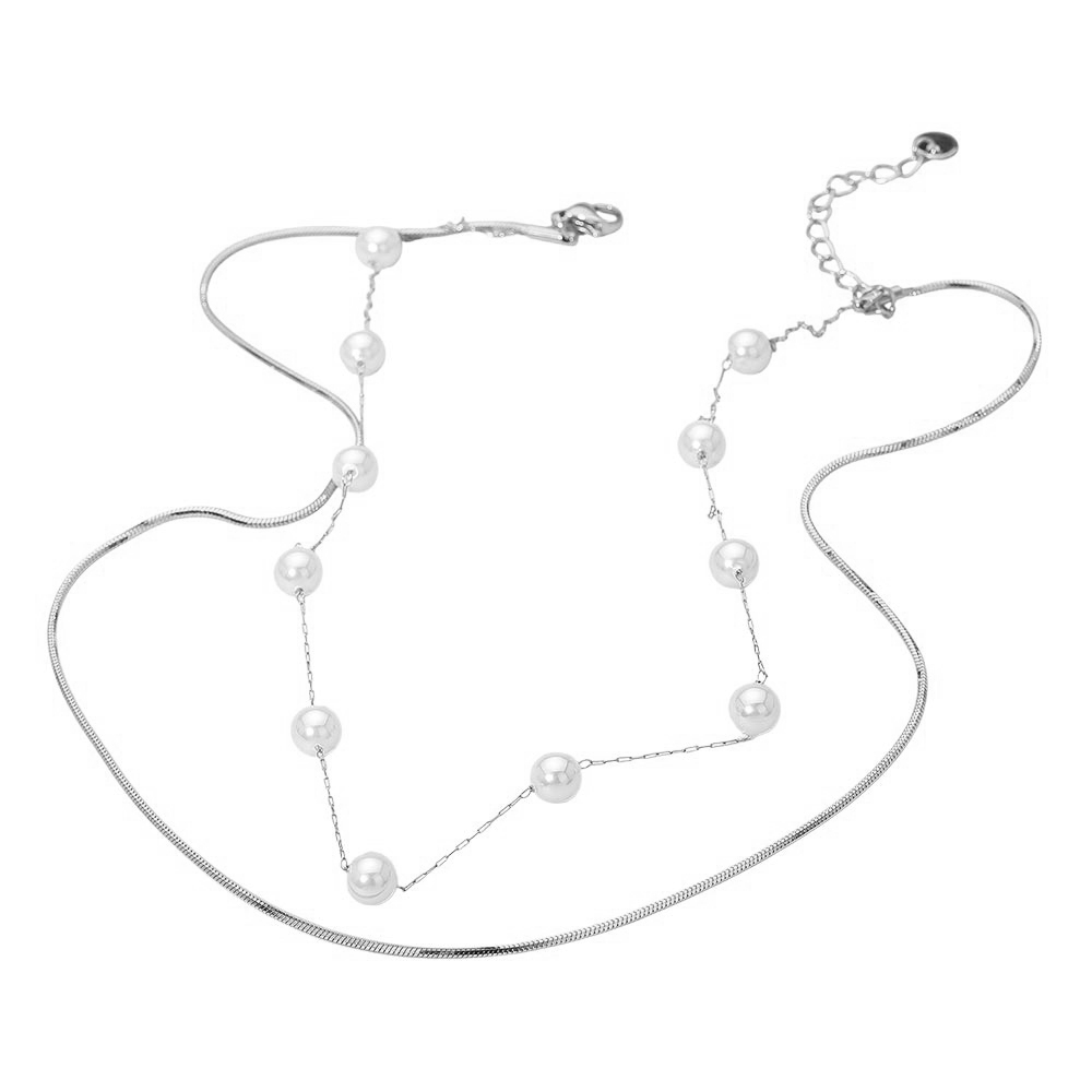 • A refined two-layer necklace featuring a smooth chain paired with a dainty strand accented by spaced pearl-style beads. Its lightweight, feminine design makes it perfect for daily wear, layering, or gifting, adding a touch of timeless elegance to any outfit.
