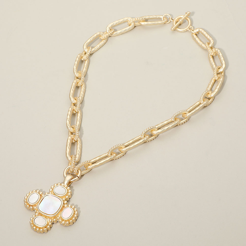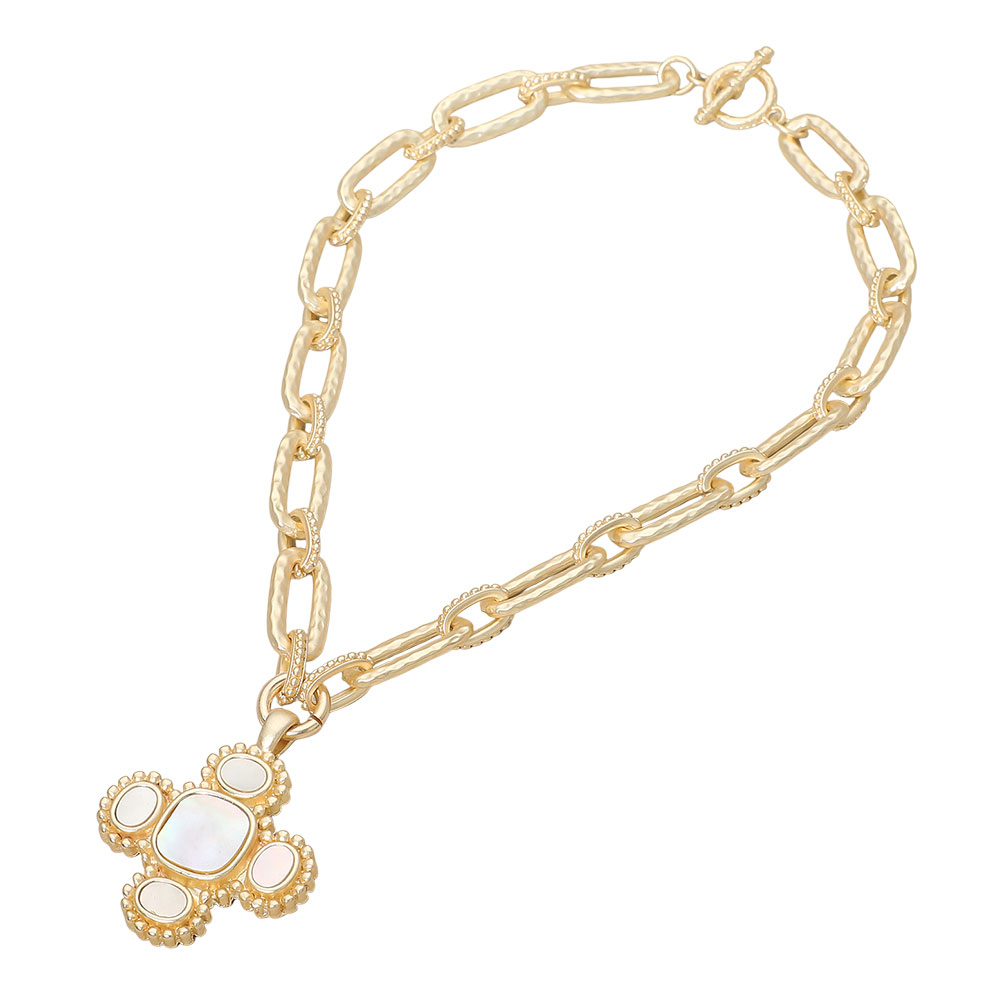 14K Gold Plated Matte Mother of Pearl Quatrefoil Pendant Chunky Toggle Necklace 14K Gold Plated Matte Mother of Pearl Quatrefoil Pendant Chunky Toggle Necklace 14K Gold Plated Matte Mother of Pearl Quatrefoil Pendant Chunky Toggle Necklace
