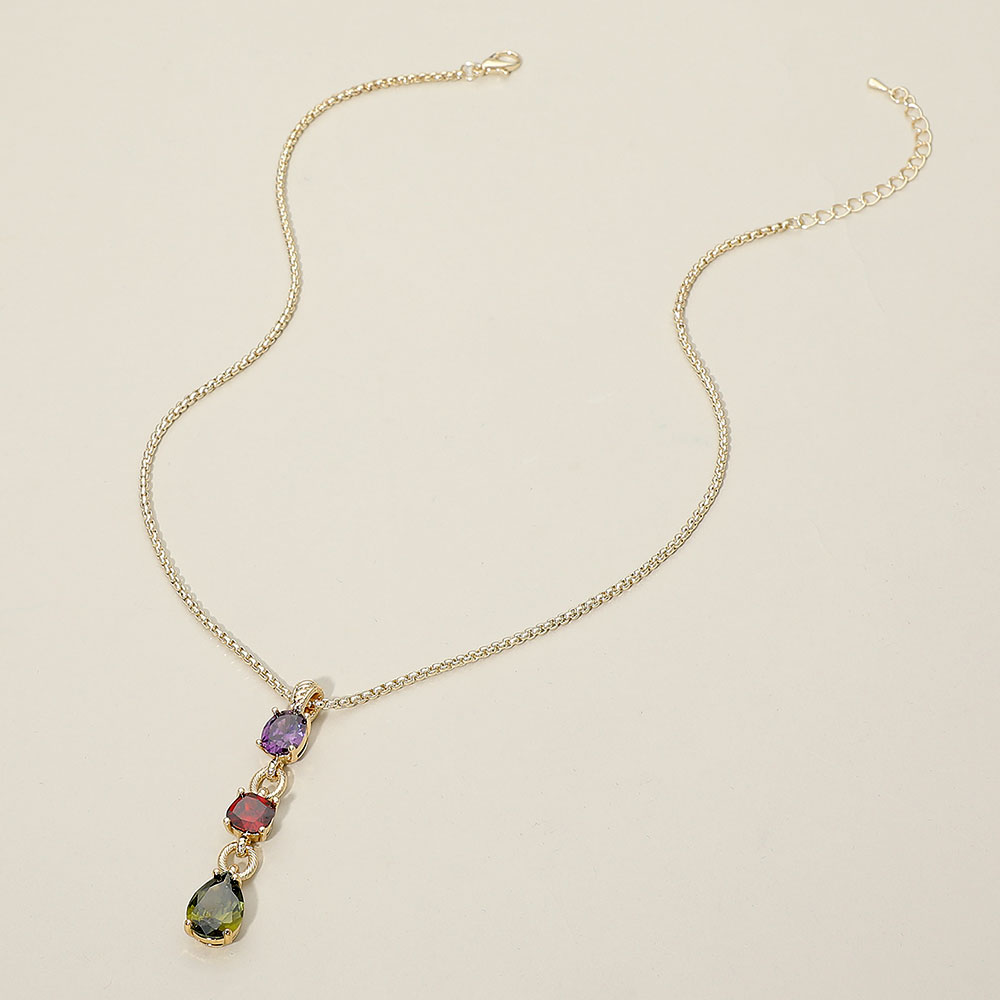 Details • Necklace Size : 16.5" + 2" • Pendant Size : 0.4" X 2.4" • Elegant pendant necklace featuring a vertical triple drop design with faceted stone accents that add refined movement and visual depth. The sleek chain silhouette makes it perfect for everyday styling or elevated occasions, offering a versatile statement ideal for boutiques, gifting, and layered jewelry collections. • CZ Cubic Zirconia • Gold Dipped