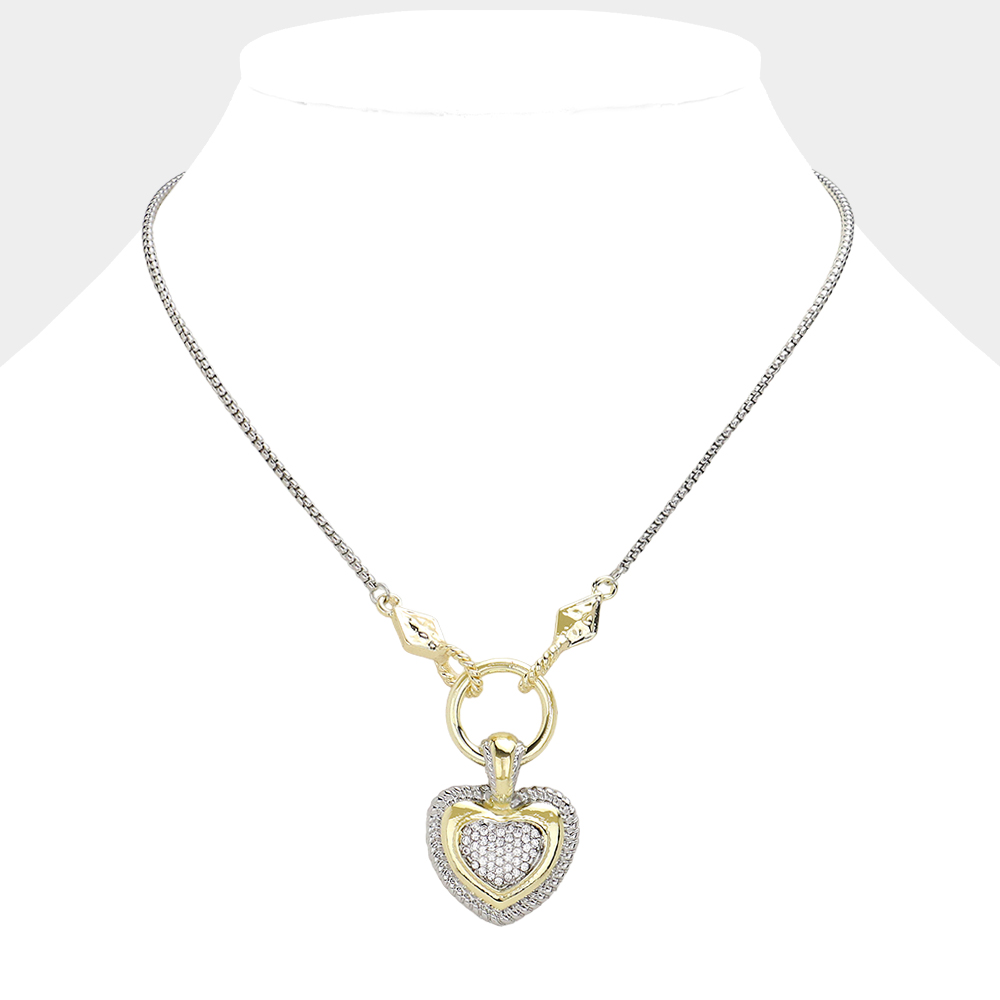 14K Gold Plated Two Tone Heart Pendant Necklace