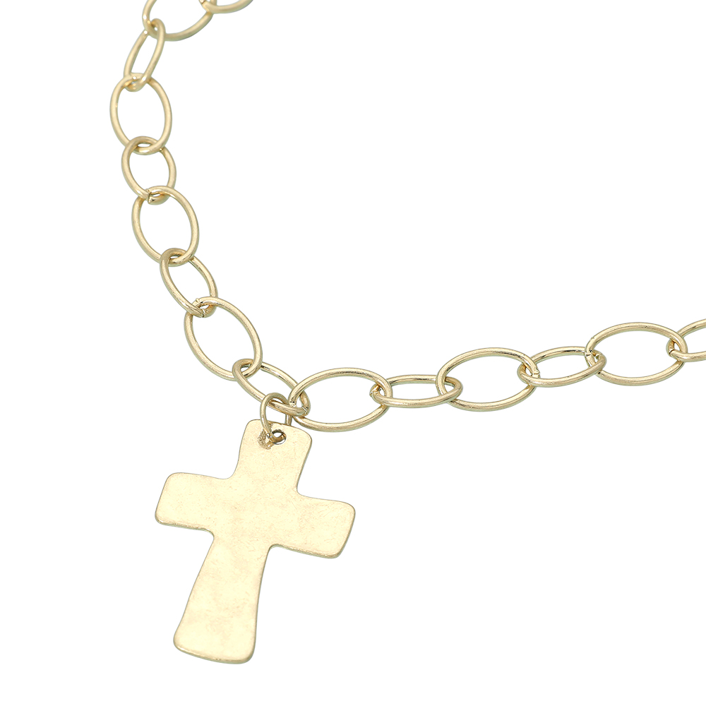 Details • Necklace Size : 18" + 3.25" L • Pendant Size : 1.25" X 2" • Make a bold statement with this chunky chain necklace featuring a sleek cross pendant. Perfect for layering or wearing solo, this faith-inspired accessory combines modern edge with timeless symbolism, offering a powerful look that’s versatile for casual outings, special events, or meaningful gifts. • Gold Dipped • Lead and Nickel Compliant • Made In Korea