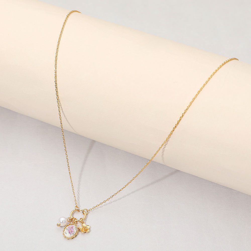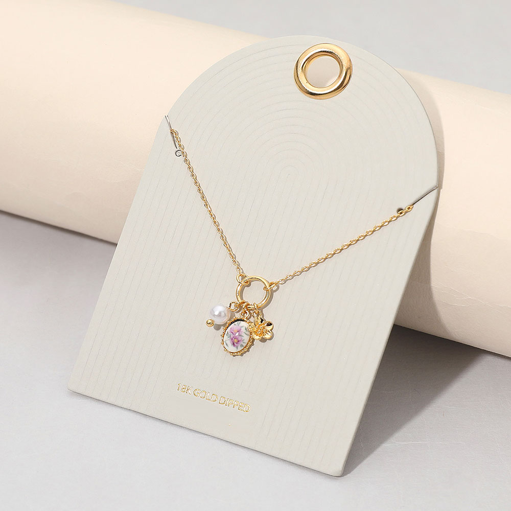 Details • Necklace Size : 16" + 3" L • Pendant Size : 0.6" X 0.75" • A dainty pendant necklace featuring delicate clustered charms and a floral accent for subtle sparkle and everyday elegance. Designed to layer beautifully or shine solo, it adds refined detail for casual outfits, special events, and gifting moments alike. • Gold Dipped • Lead and Nickel Compliant • Made In Korea