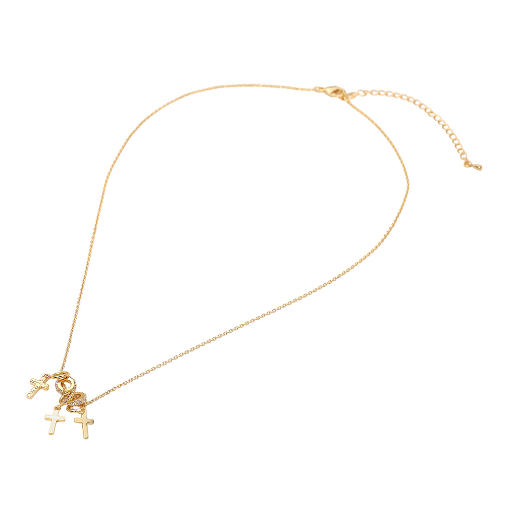 18K Gold Dipped Small Triple Cross Pendant Necklace