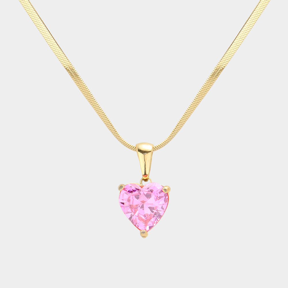 18K Gold Dipped Stainless Steel CZ Heart Pendant Necklace