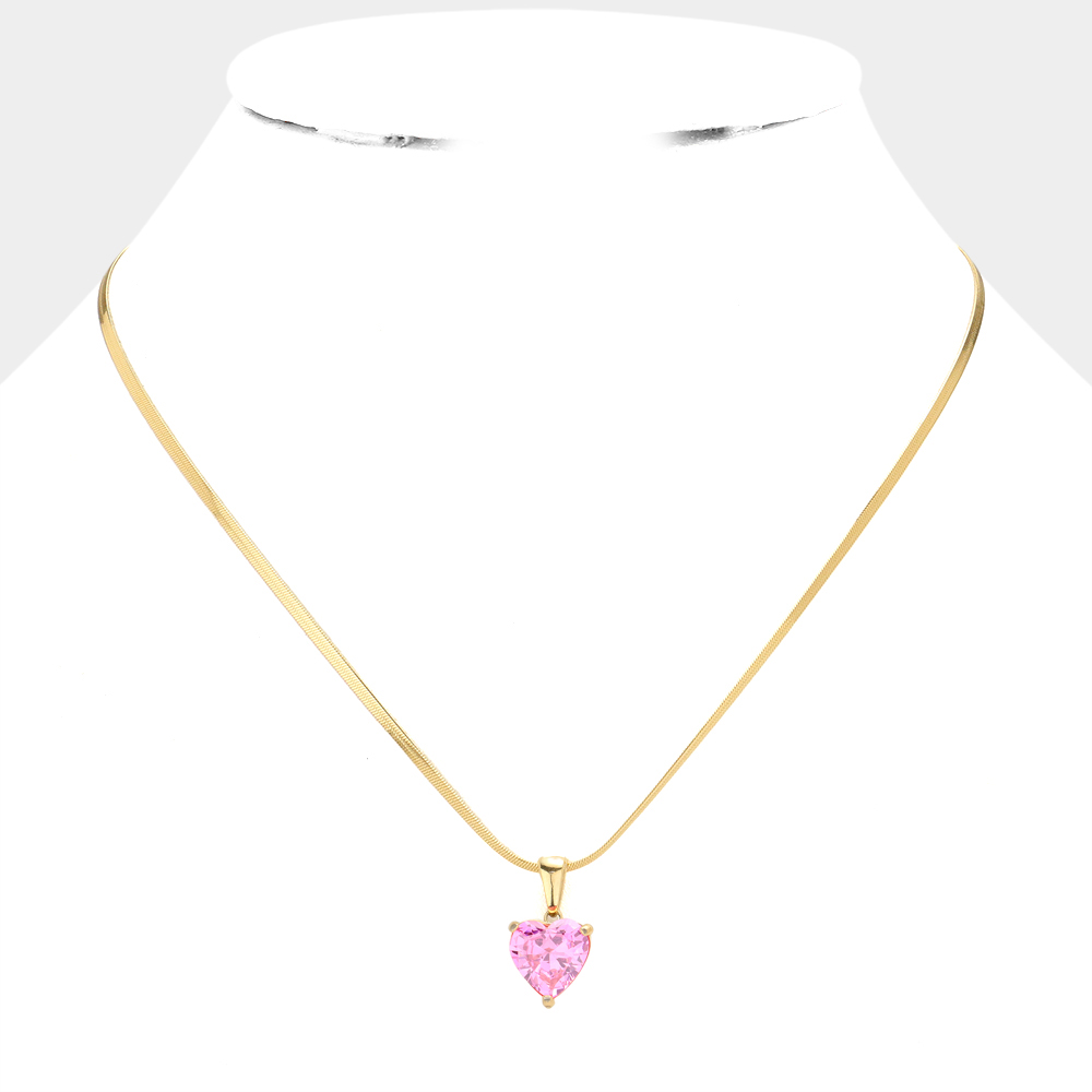 Stainless Steel CZ Heart Pendant Necklace