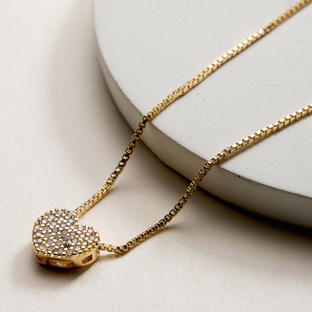 18K Gold Filled CZ Stone Paved Heart Pendant Necklace