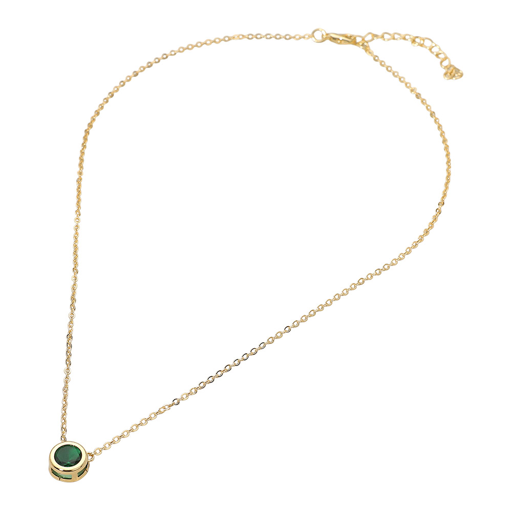 18K Gold Filled Round Stone Bezel Pendant Necklace