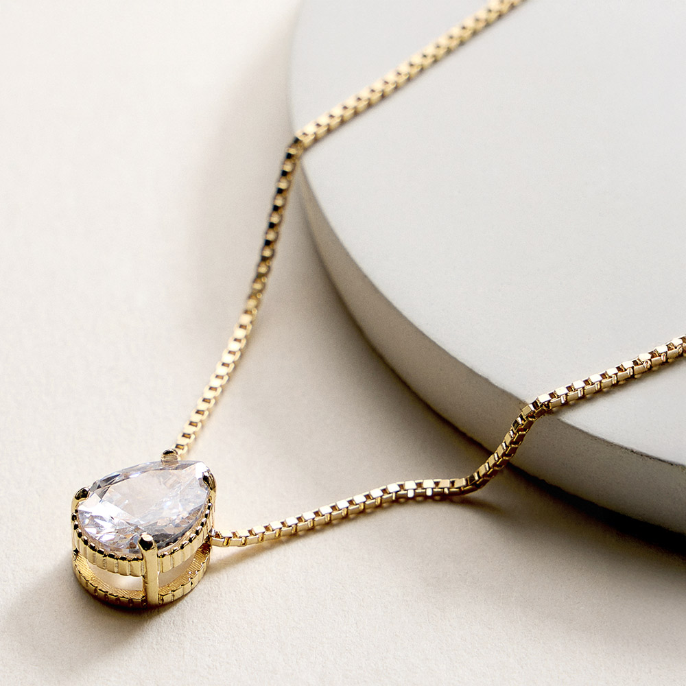 Details • Necklace Size : 18" + 1.75" L • Pendant Size : 0.4" X 0.5" • This teardrop solitaire charm pendant necklace features a classic, elegant silhouette designed for effortless everyday wear. Ideal for layering or wearing solo, it adds subtle sparkle to casual, work, or evening looks. A timeless jewelry essential that appeals to gift shoppers and boutique customers seeking refined, easy-to-style accessories. • Lead and Nickel Compliant • Hypoallergenic • Gold Filled • CZ Cubic Zirconia • Made In Brazil