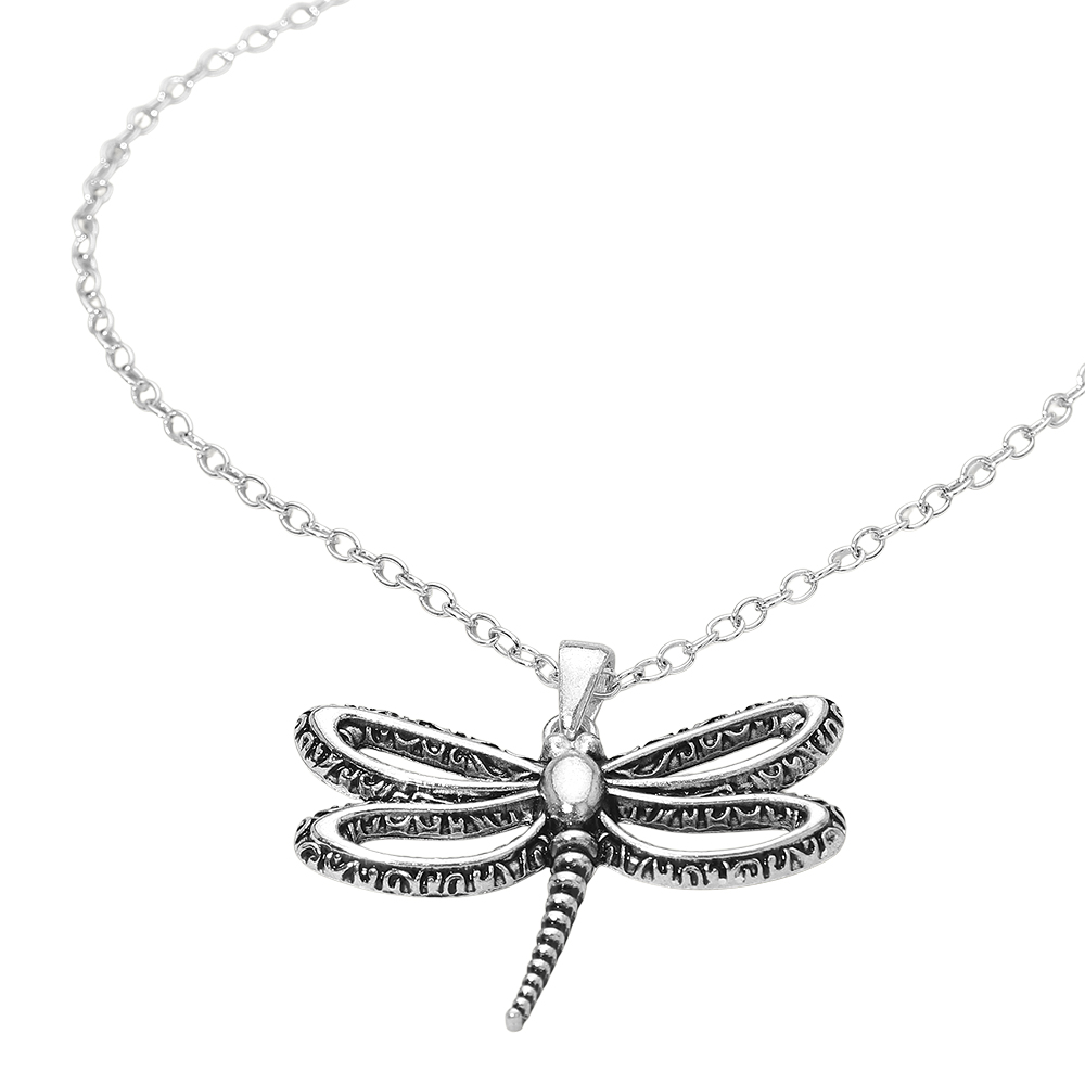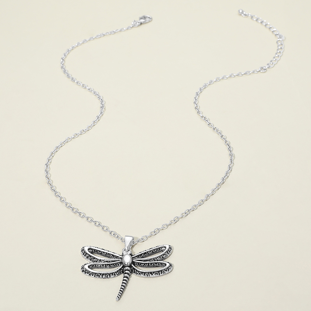 Details • Necklace Size : 20" + 3" L • Pendant Size : 2" X 1.6" • This dragonfly pendant necklace features a finely detailed wing design that brings a delicate, nature-inspired accent to everyday styling. Lightweight and easy to layer, it pairs well with casual or dress looks. A versatile choice for boutiques, gift shops, and seasonal collections inspired by nature, symbolism, and effortless accessorizing. • Lead and Nickel Compliant