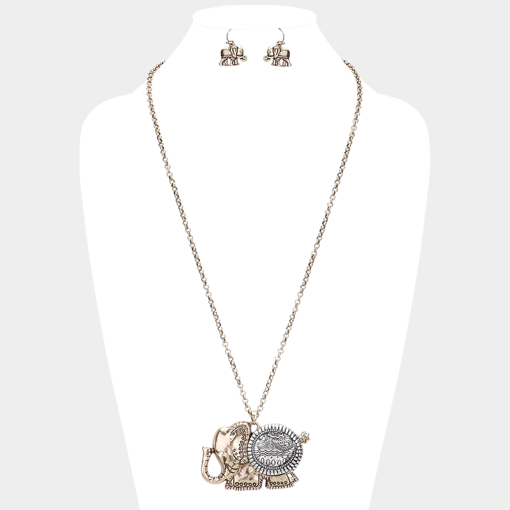 Antique Pattern Elephant Pendant Necklace