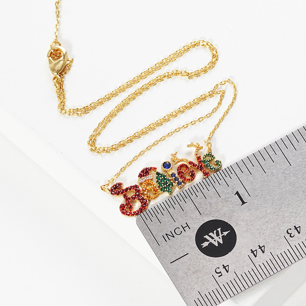Believe Gold Dipped CZ Santa Hat Reindeer Message Pendant Necklace
