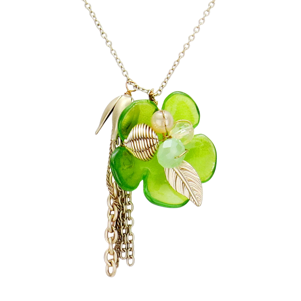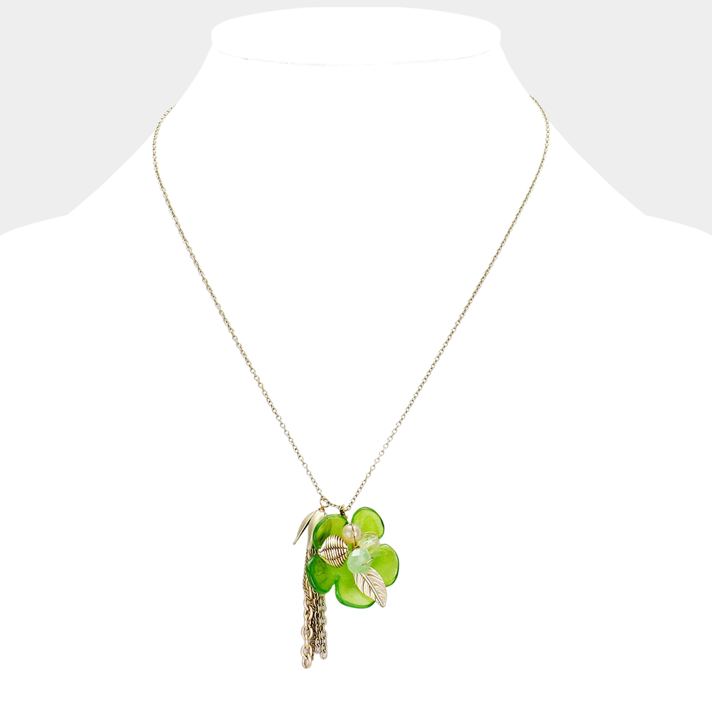 Teardrop Stone Leaf Cluster Vine Statement Evening Necklace