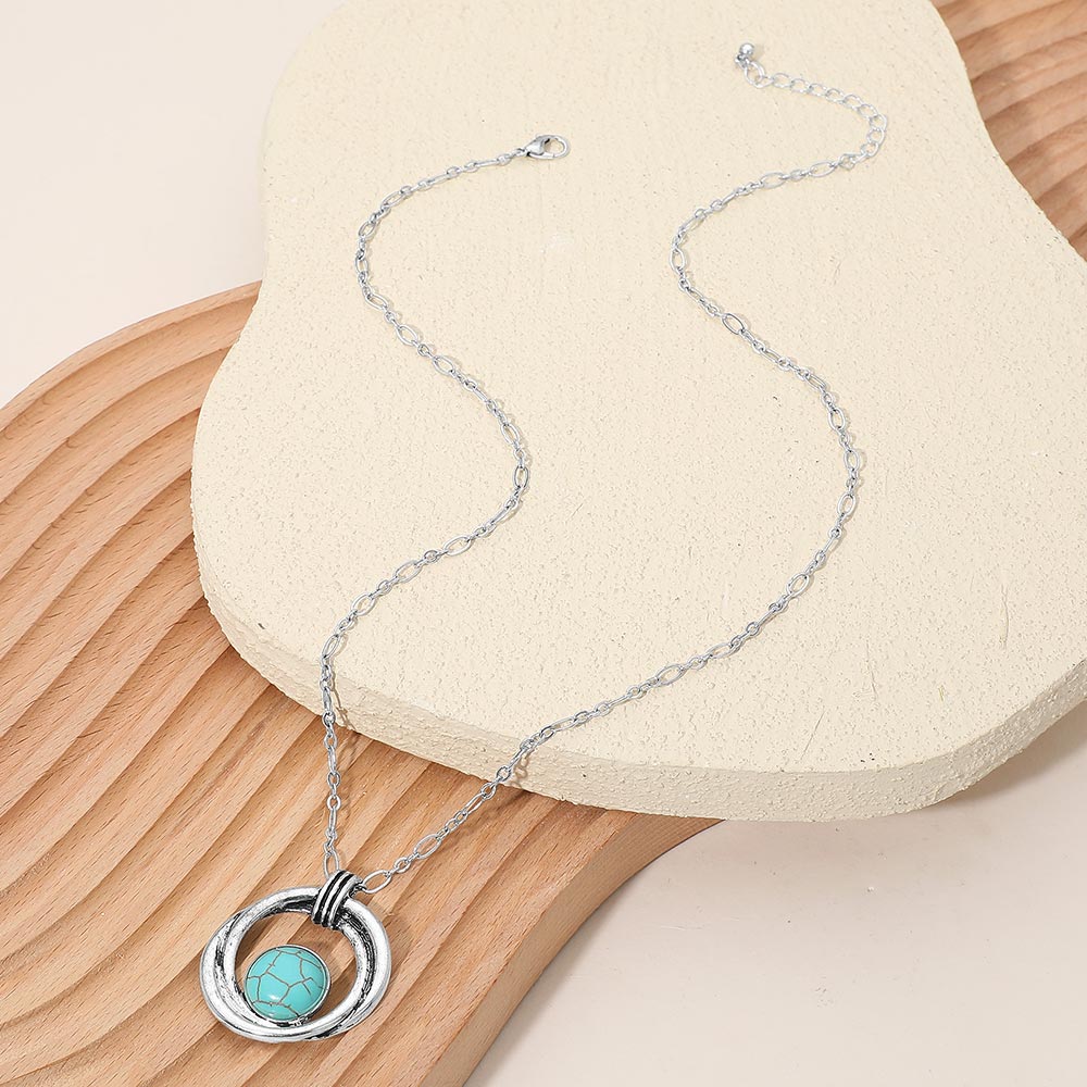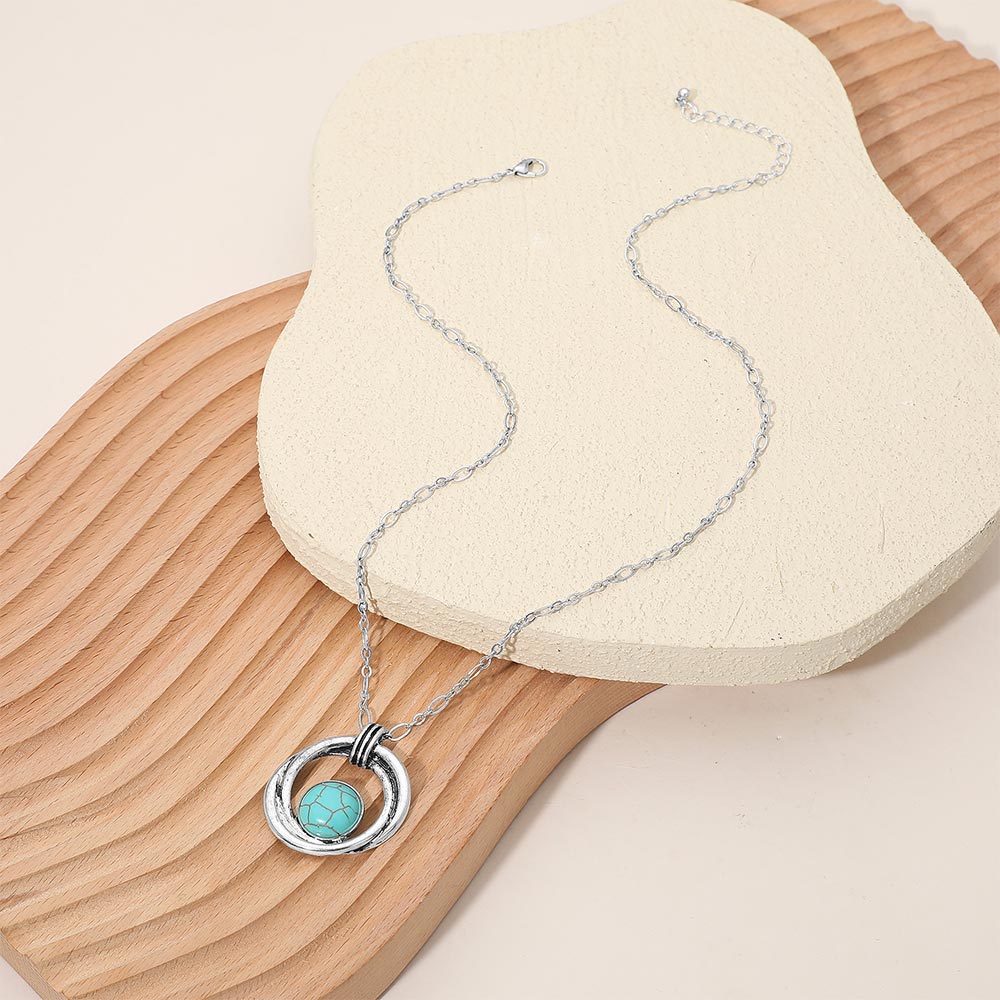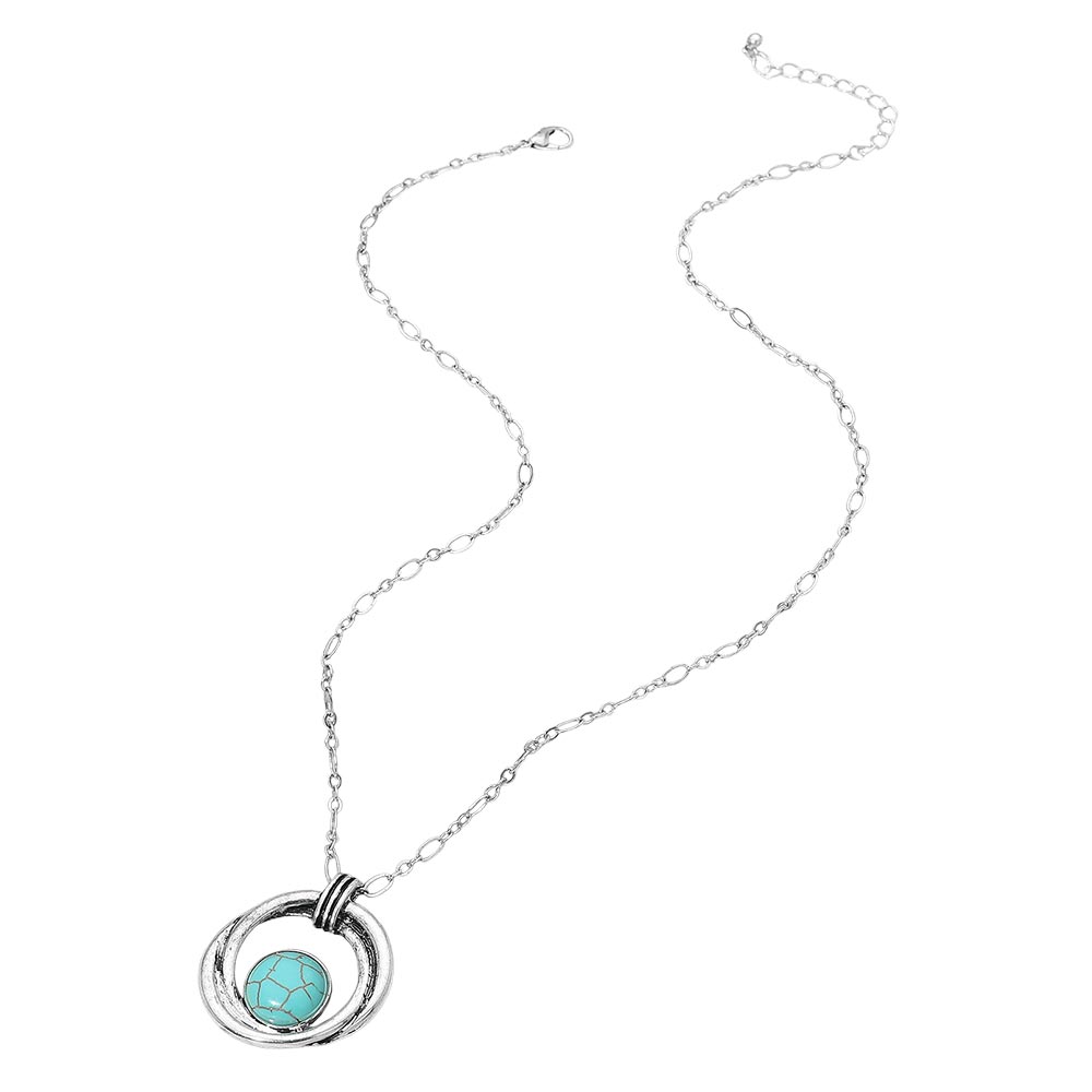 Details • Necklace Size : 19" + 2" L • Pendant Size : 1.25" X 1.5" • Stylish round pendant necklace featuring a double ring frame encircling a central stone accent. The open circular design adds balance and elegance, making it a versatile accessory for layering or standalone wear in both casual and refined looks. • Lead and Nickel Compliant