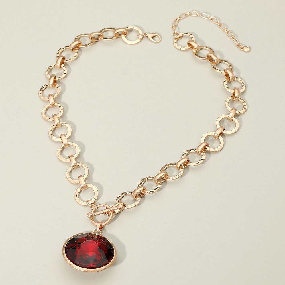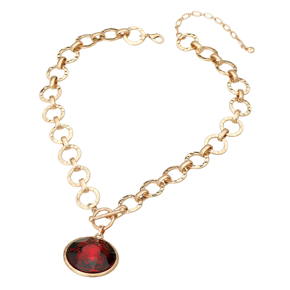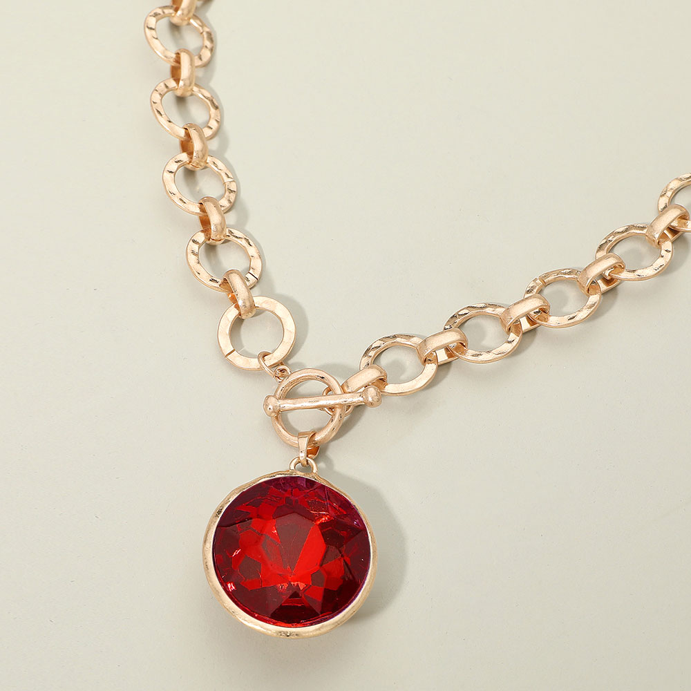 Details • Necklace Size : 18" + 3" L • Pendant Size : 1.4" X 1.4" • Toggle Closure • Add a touch of elegance to your style with this hammered link chain necklace featuring a stunning faceted gem pendant. Designed for both sophistication and edge, this piece is ideal for evening wear or everyday glamour, making it a standout addition to any jewelry collection. • Lead and Nickel Compliant