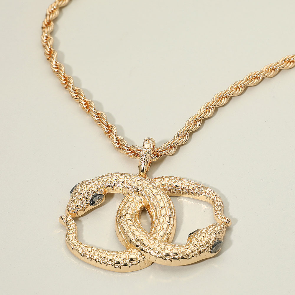 Bold Textured Metal Interlocking Snake Pendant Chunky Twisted Chain Necklace Bold Textured Metal Interlocking Snake Pendant Chunky Twisted Chain Necklace Bold Textured Metal Interlocking Snake Pendant Chunky Twisted Chain Necklace