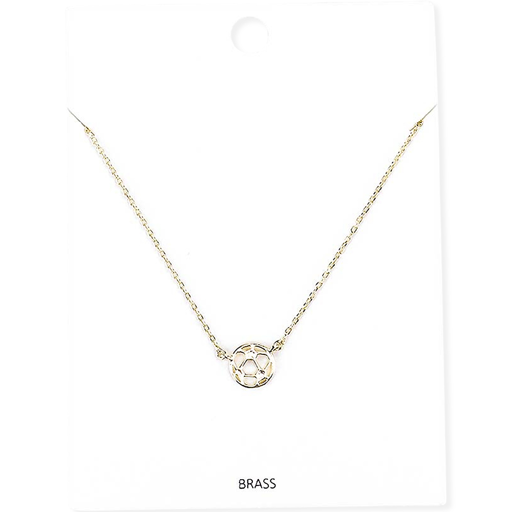 Brass Metal Cutout Soccer Ball Pendant Necklace