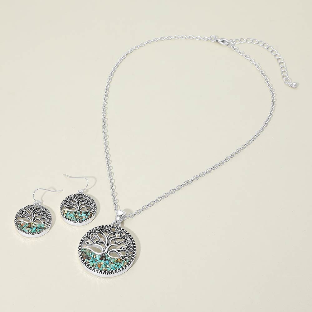 • This Tree of Life pendant necklace and matching earring set features a detailed circular design symbolizing growth, strength, and connection. The coordinated set offers timeless appeal with an elegant silhouette that pairs easily with everyday outfits or meaningful gifting collections. Ideal for boutiques seeking symbolic jewelry that resonates across seasons and occasions.