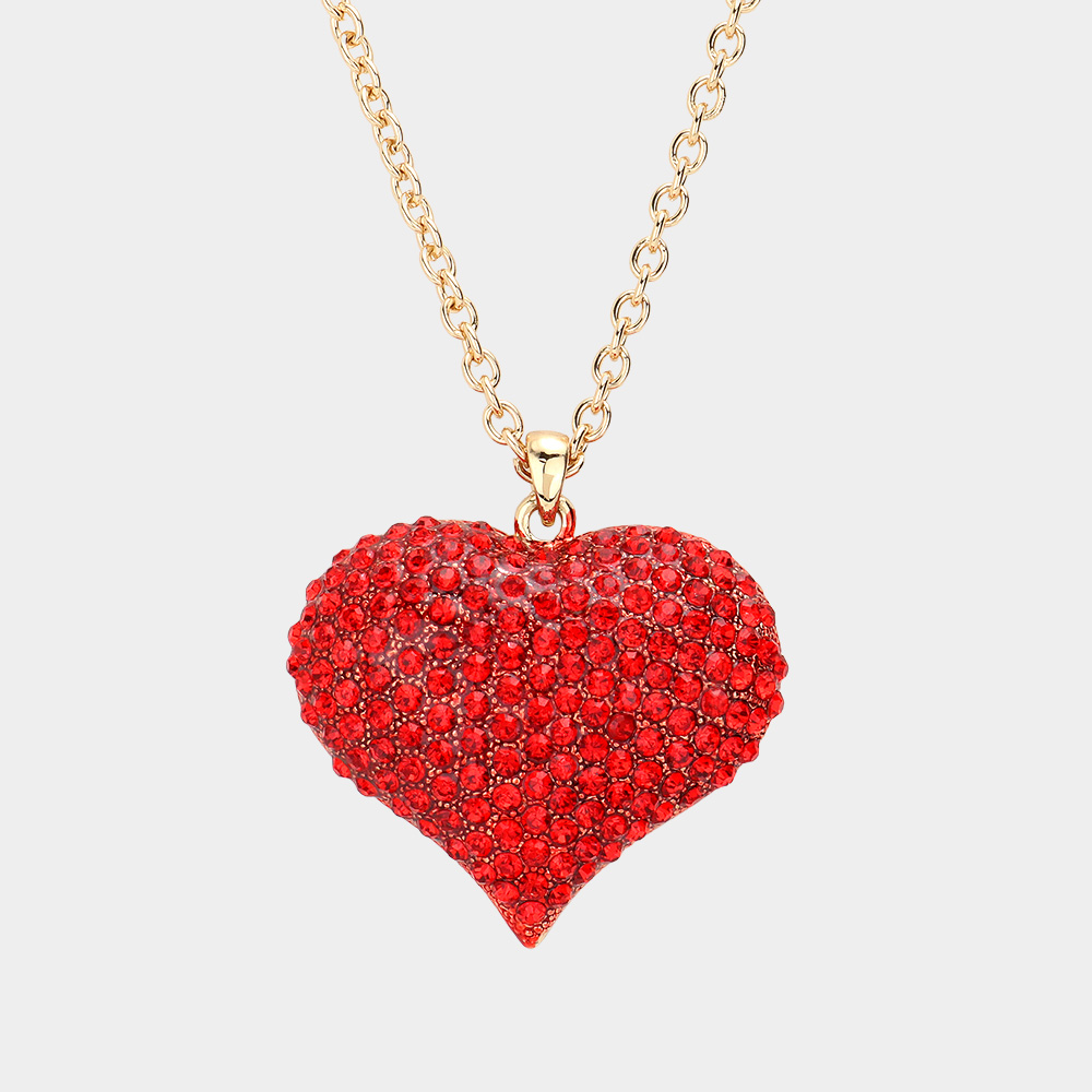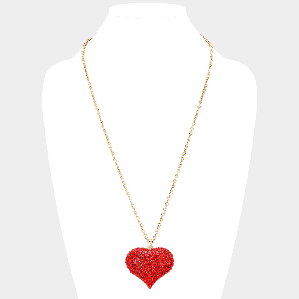 Crystal Pave Heart Pendant Long Necklace