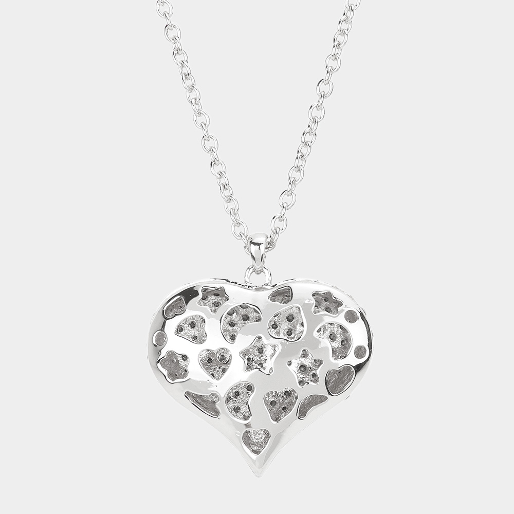 Floral Pearl Detailed Romantic Heart Pendant Necklace