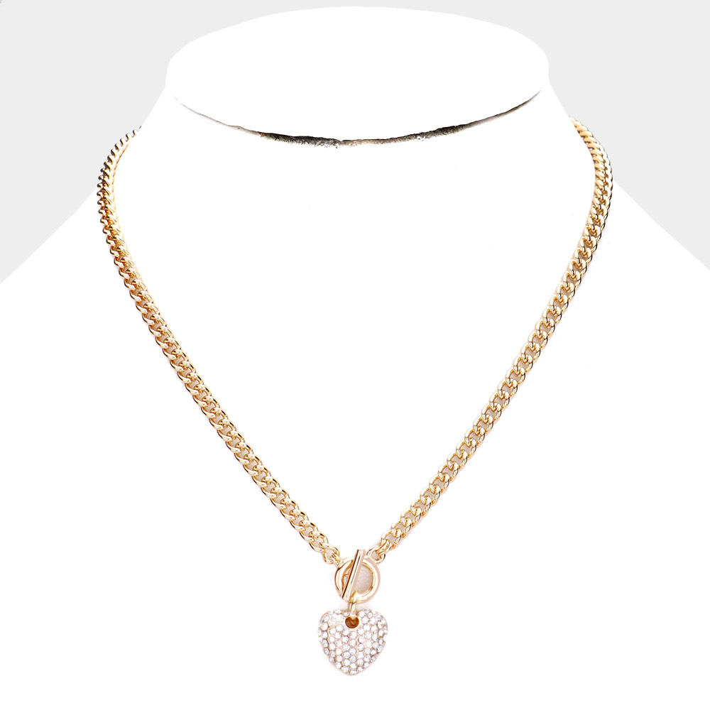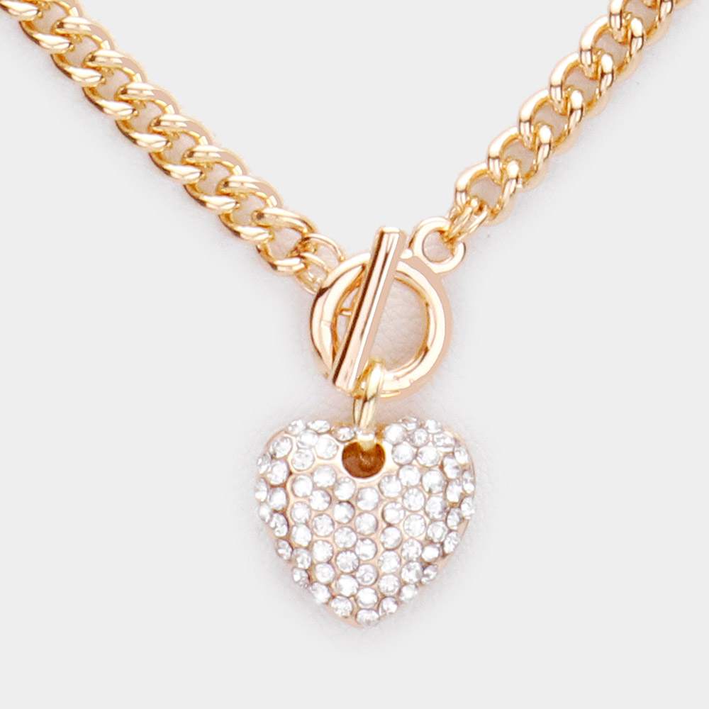 Crystal Rhinestone Pave Heart Pendant Toggle Necklace