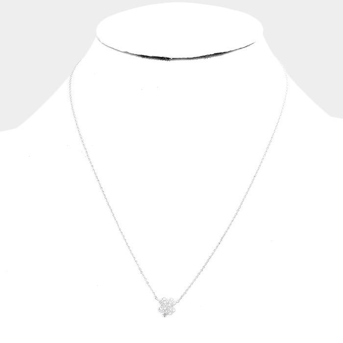 White Gold Dipped Stone Paved Quatrefoil Charm Pointed Paperclip Chain Bracelet