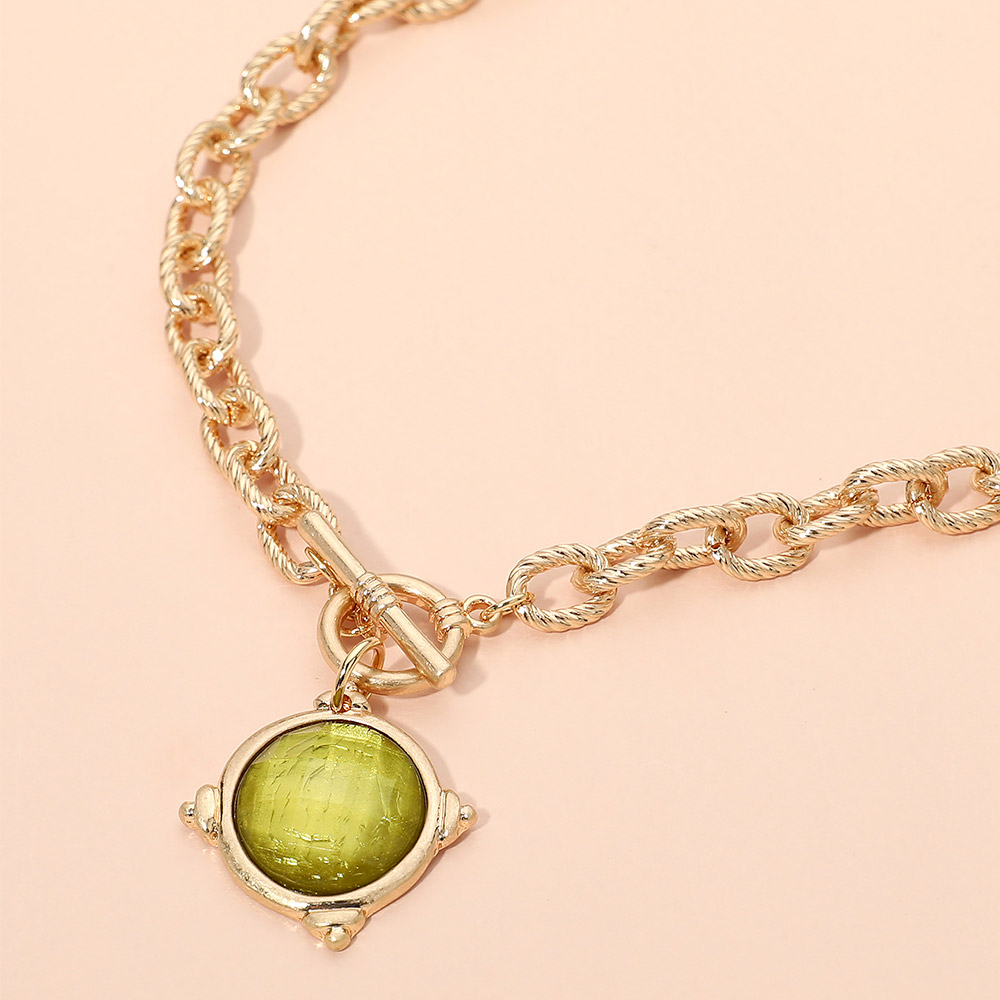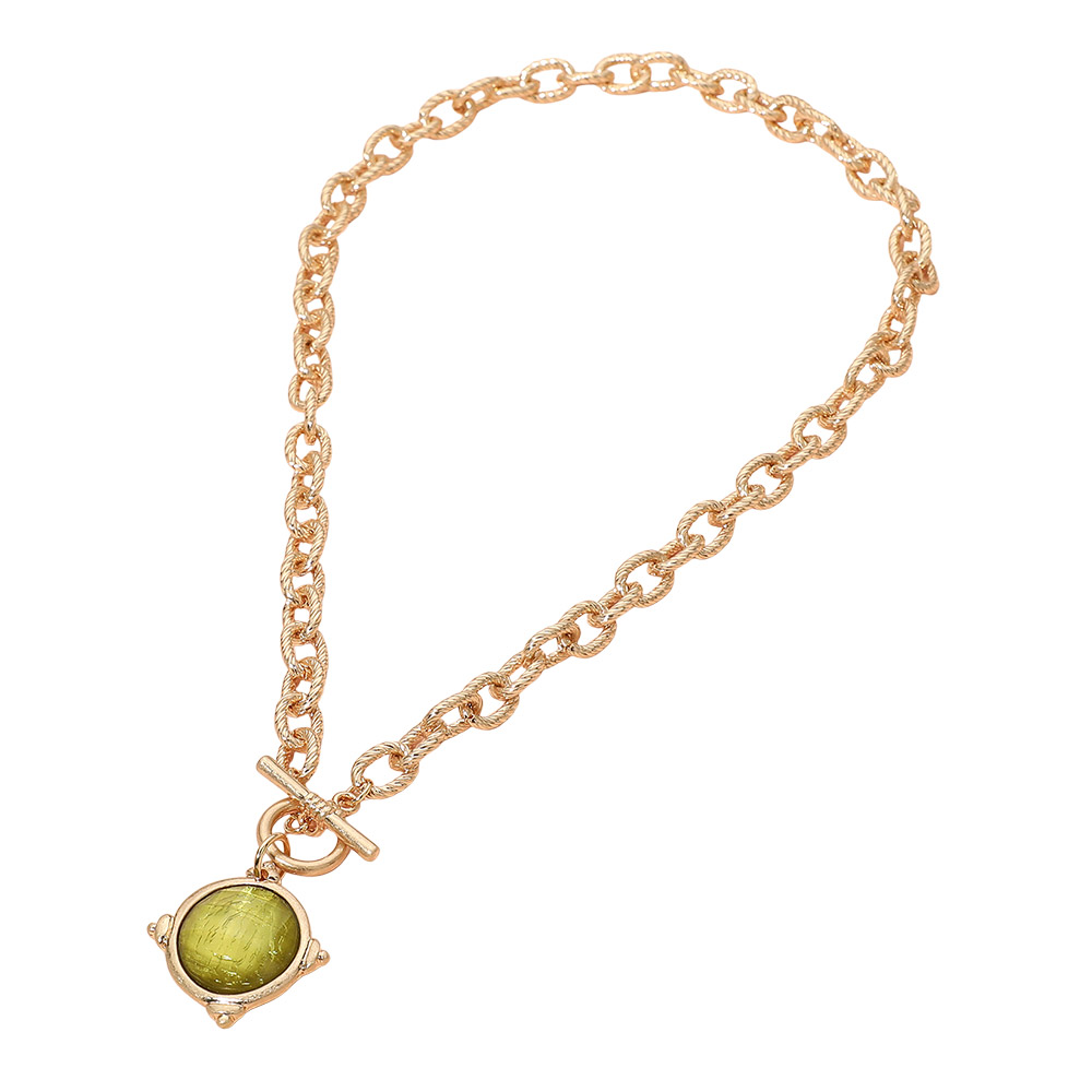 Faceted Round Stone Charm Pendant Toggle Necklace