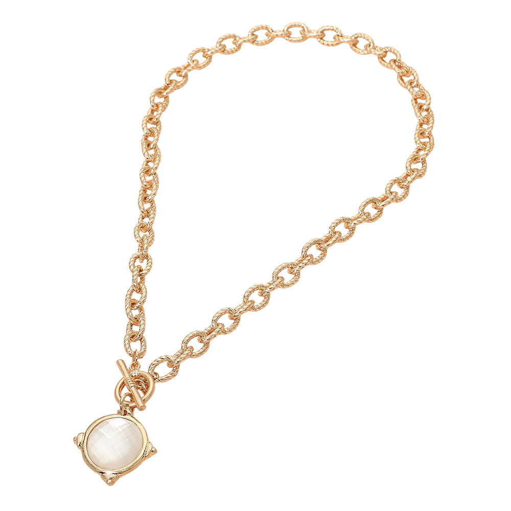 Faceted Round Stone Charm Pendant Toggle Necklace