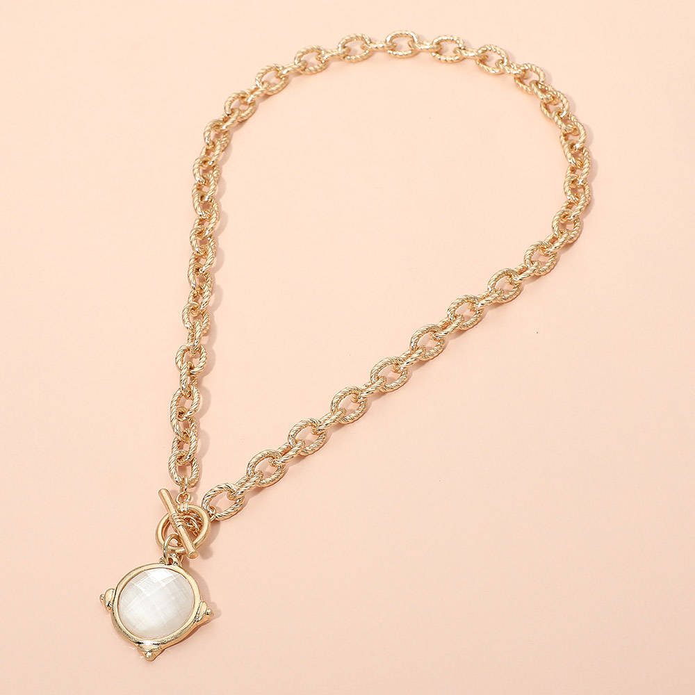 • Elegant chain necklace featuring a round charm with subtle texture and a toggle-style closure. Designed for easy styling, this versatile piece adds a refined statement to casual or elevated looks and layers effortlessly with other necklaces for a modern, curated finish.