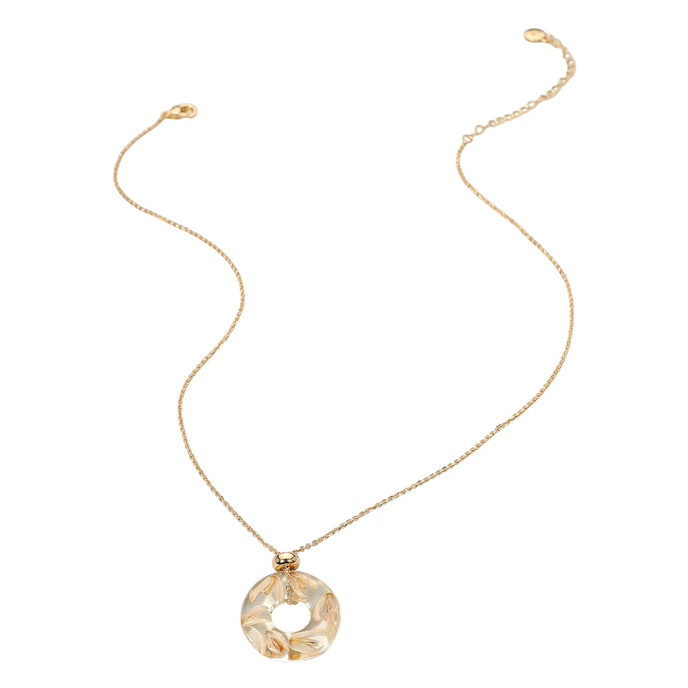 • Add effortless sophistication with the Botanical Ring Pendant Necklace, showcasing a sleek circular charm with delicate organic detailing suspended from a fine chain. Ideal for everyday wear or layered styling, this piece brings a graceful, modern accent to any outfit.