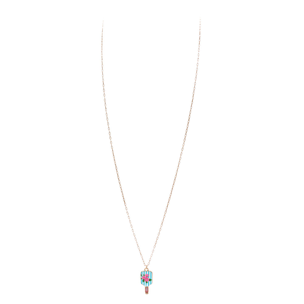 Floral Pickleball Paddle Pendant Necklace